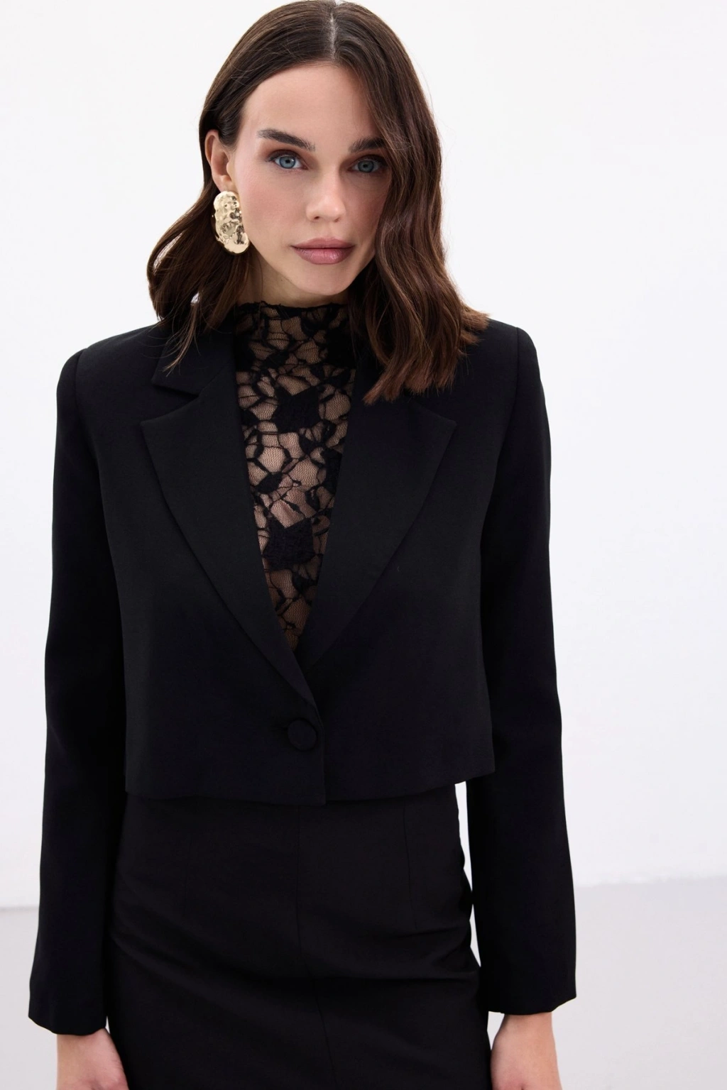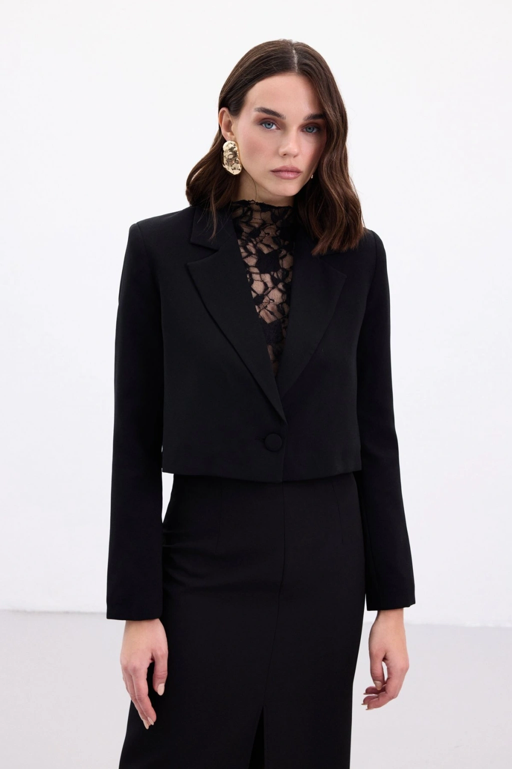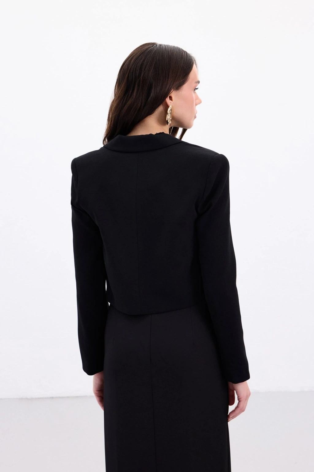 Gömlek Yaka Fermuarlı Kısa Ceket Gri