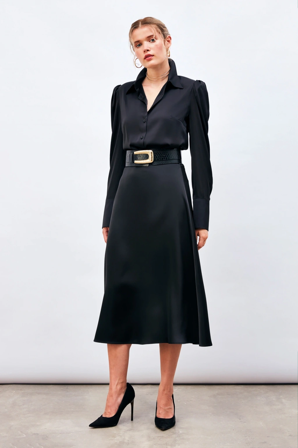 Midi Boy Saten Etek - SİYAH