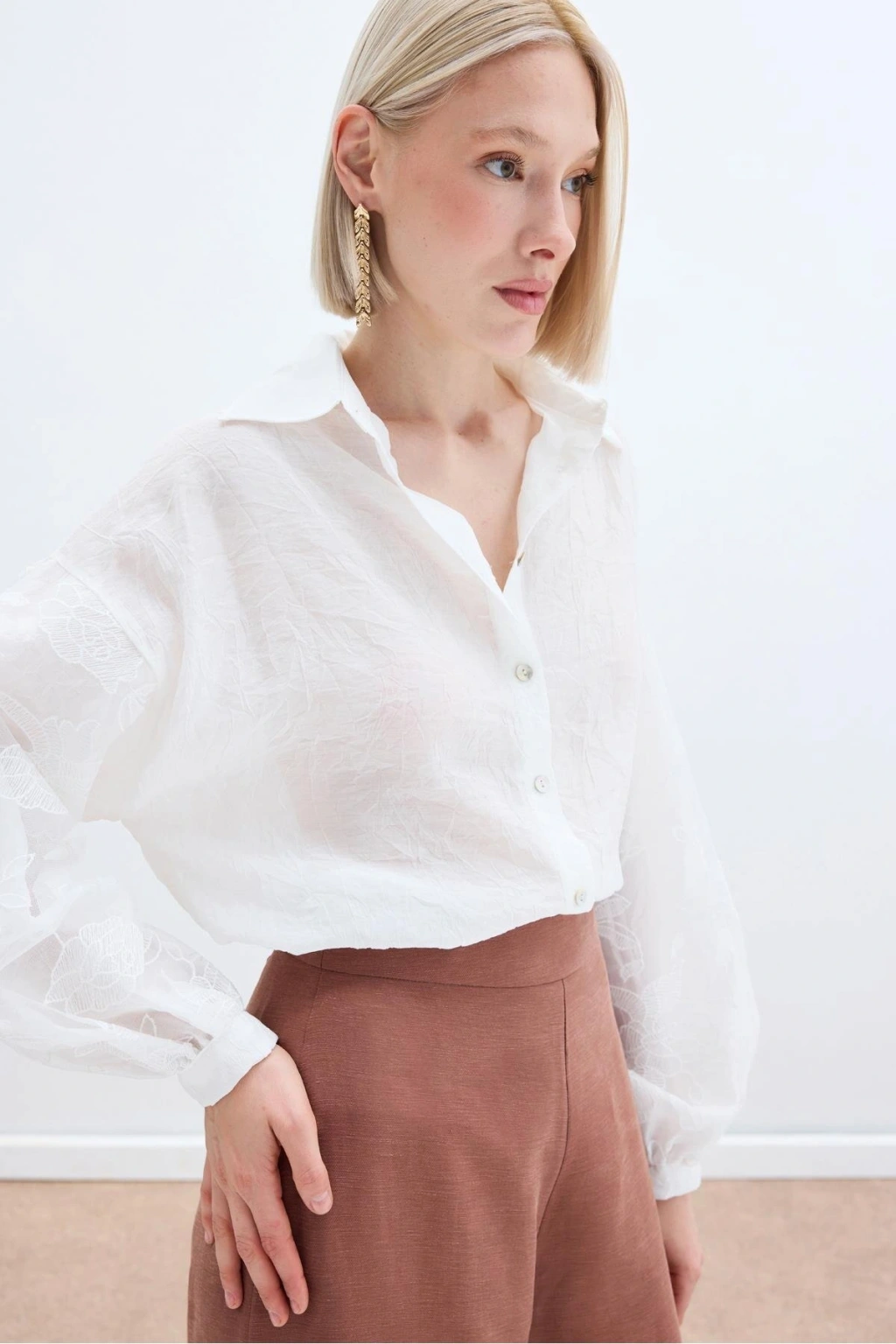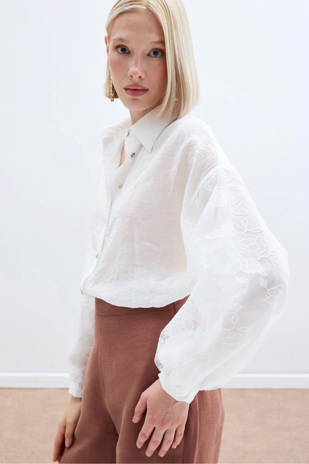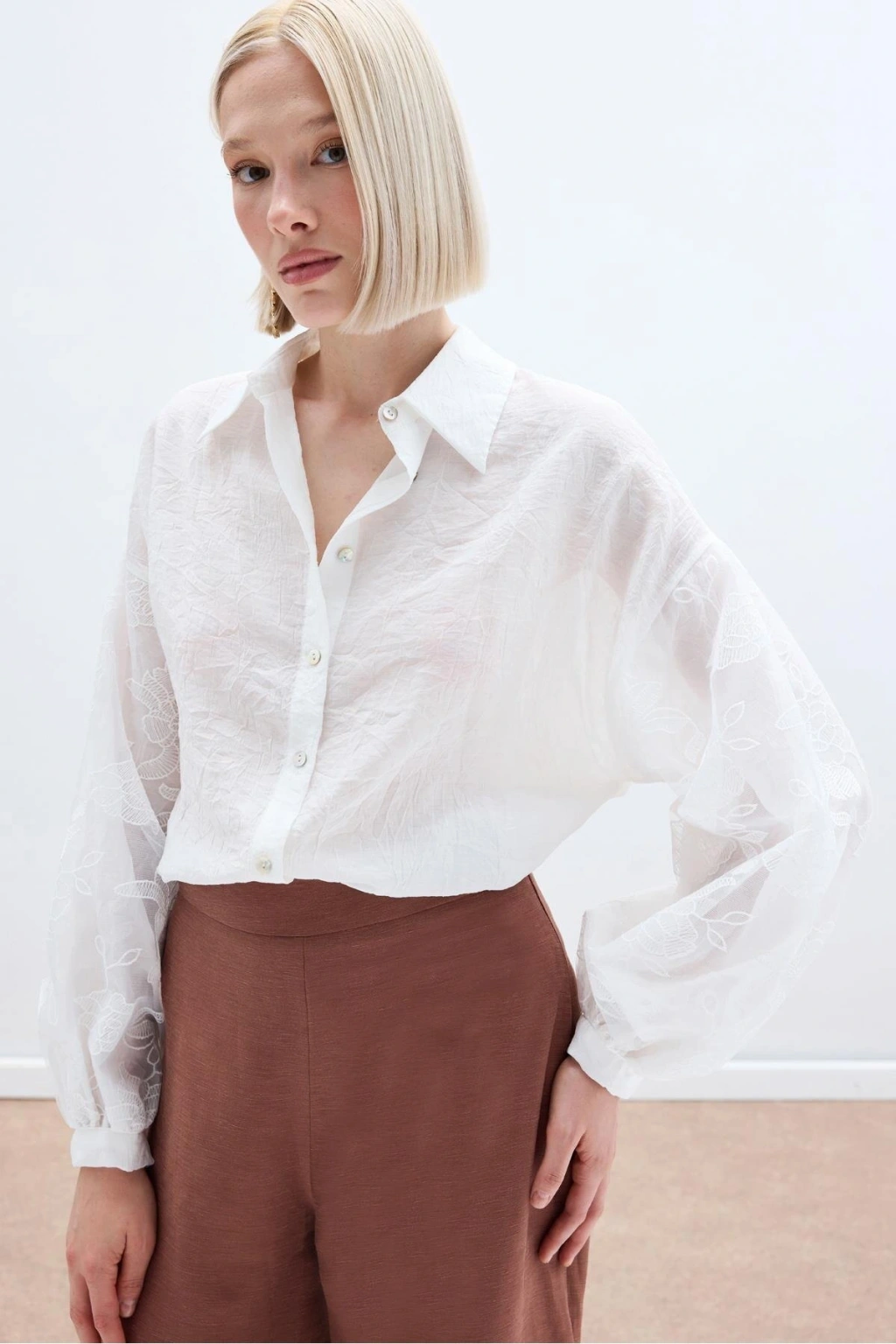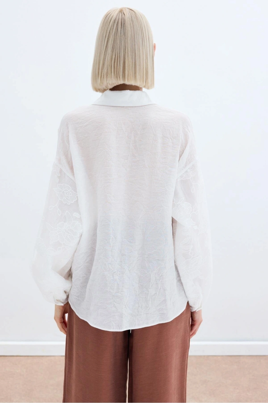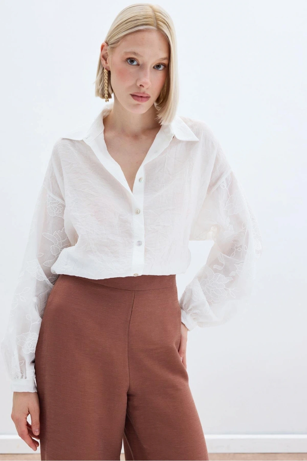 Nakış Detaylı Kraşlı Gömlek - Ekru
