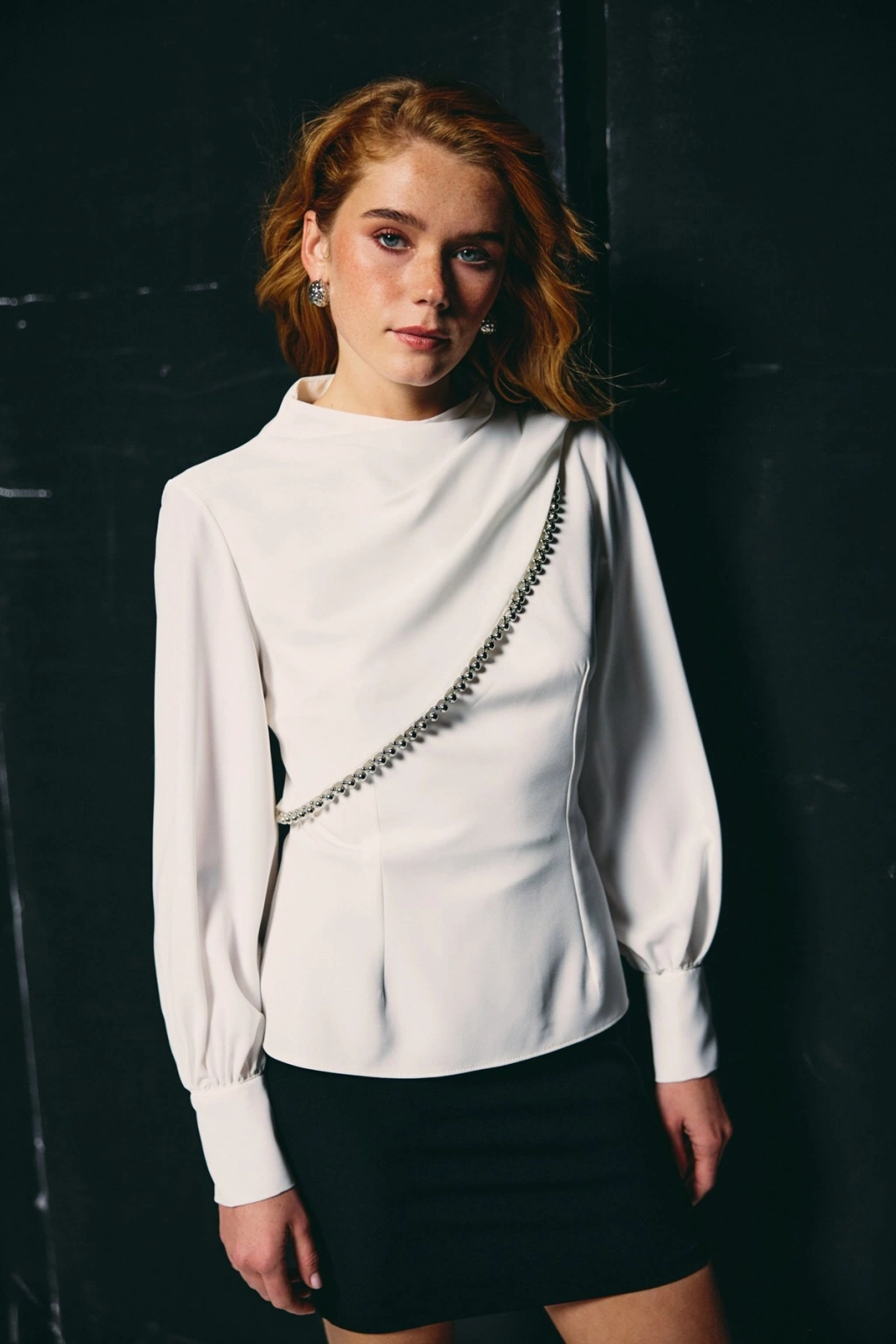 Ön Aksesuarlı Bluz - Ekru
