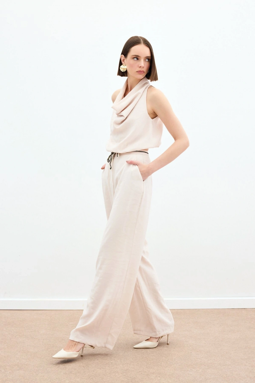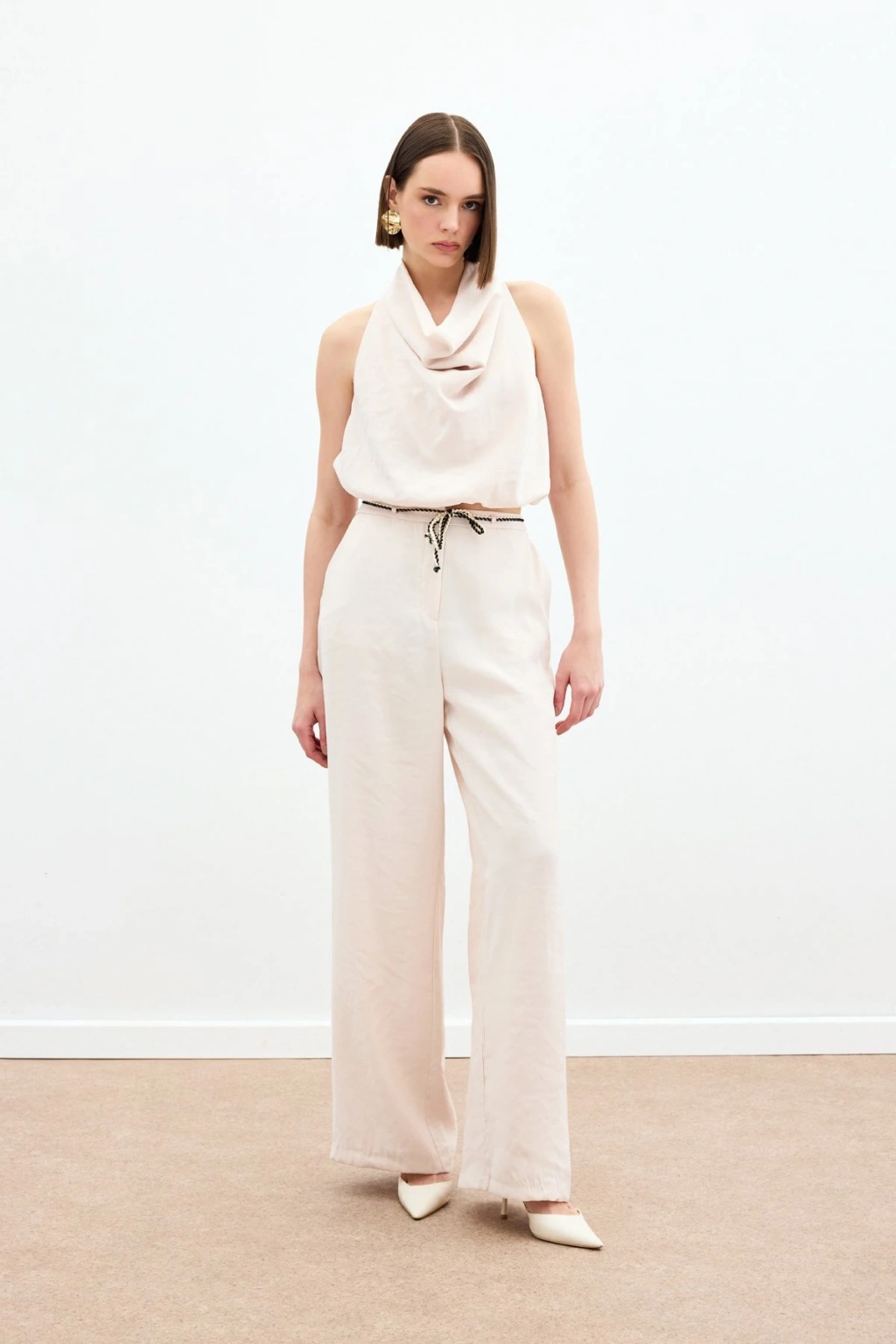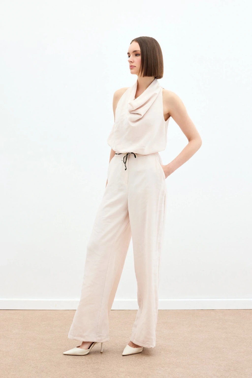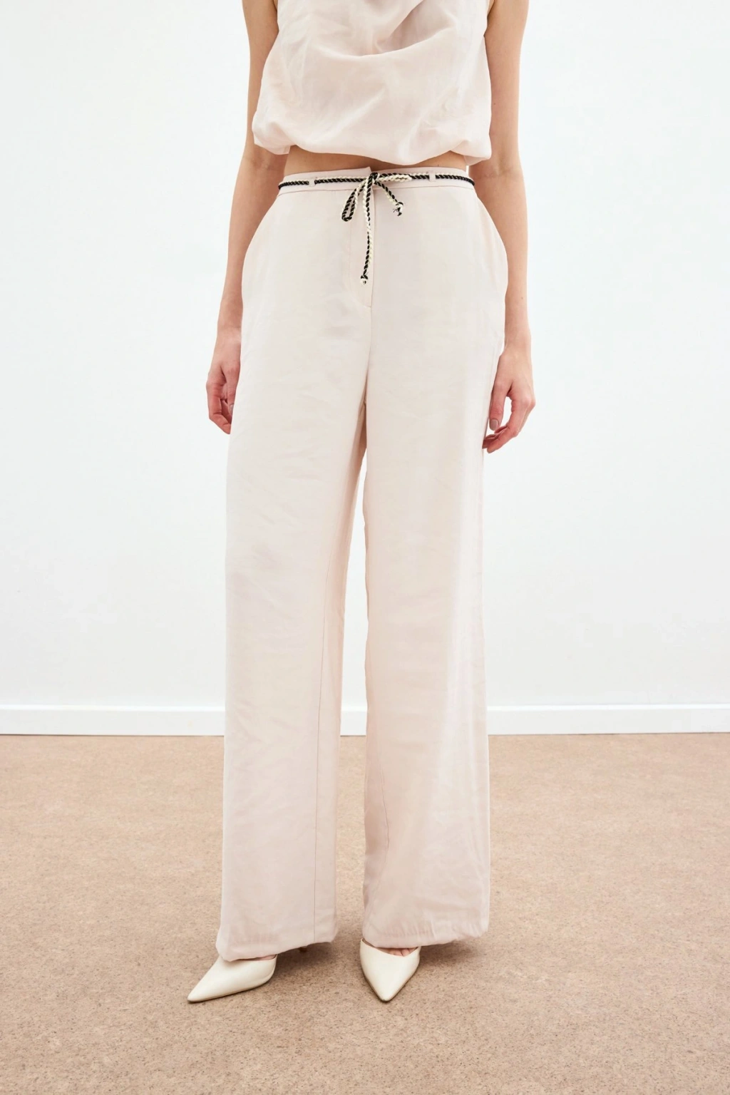 Bağcıklı Salaş Pantolon - Pudra