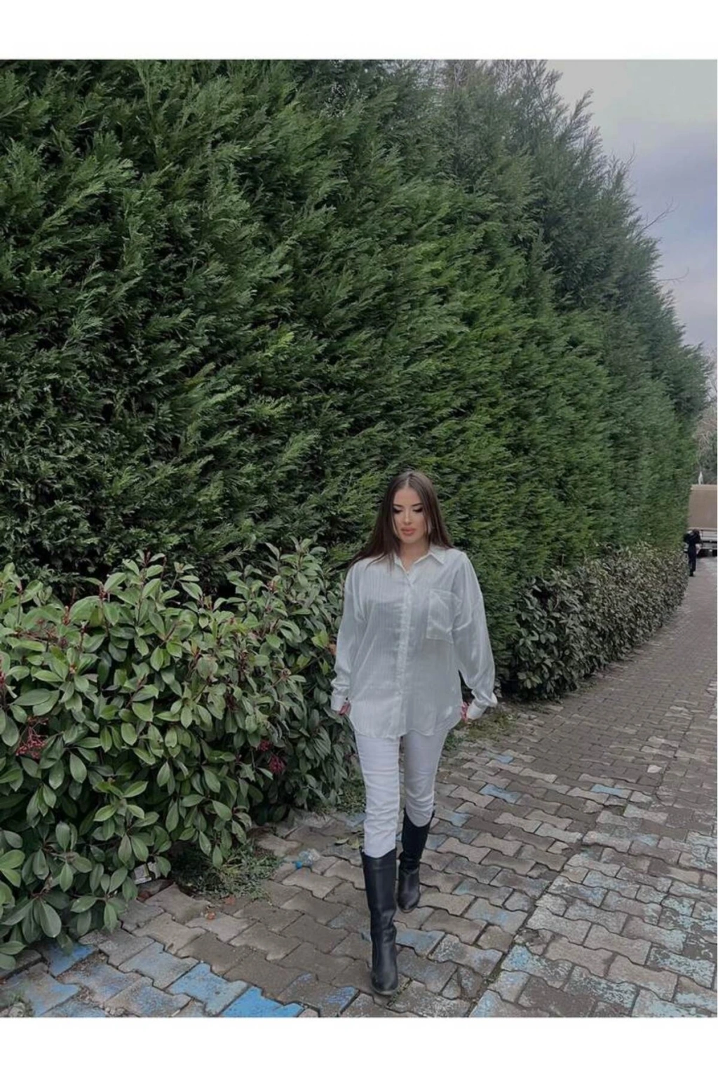 OVERSİZE CEP DETAYLI GÖMLEK BEYAZ-GÜMÜŞ