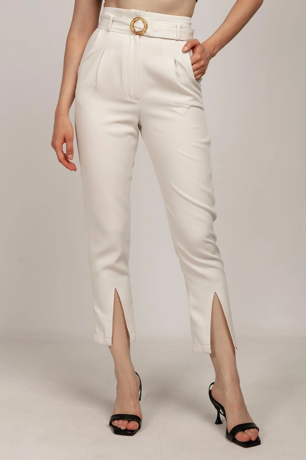 PAÇASI YIRTMAÇLI PANTOLON EKRU