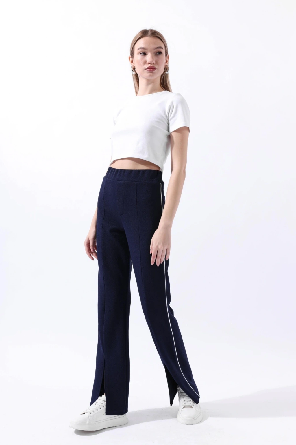 Paçası Yırtmaçlı Pantolon Lacivert 36257