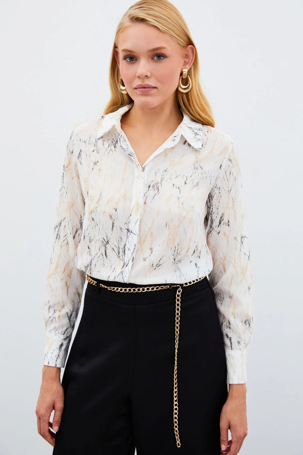 Aksesuarlı Klasik Gömlek - Ekru