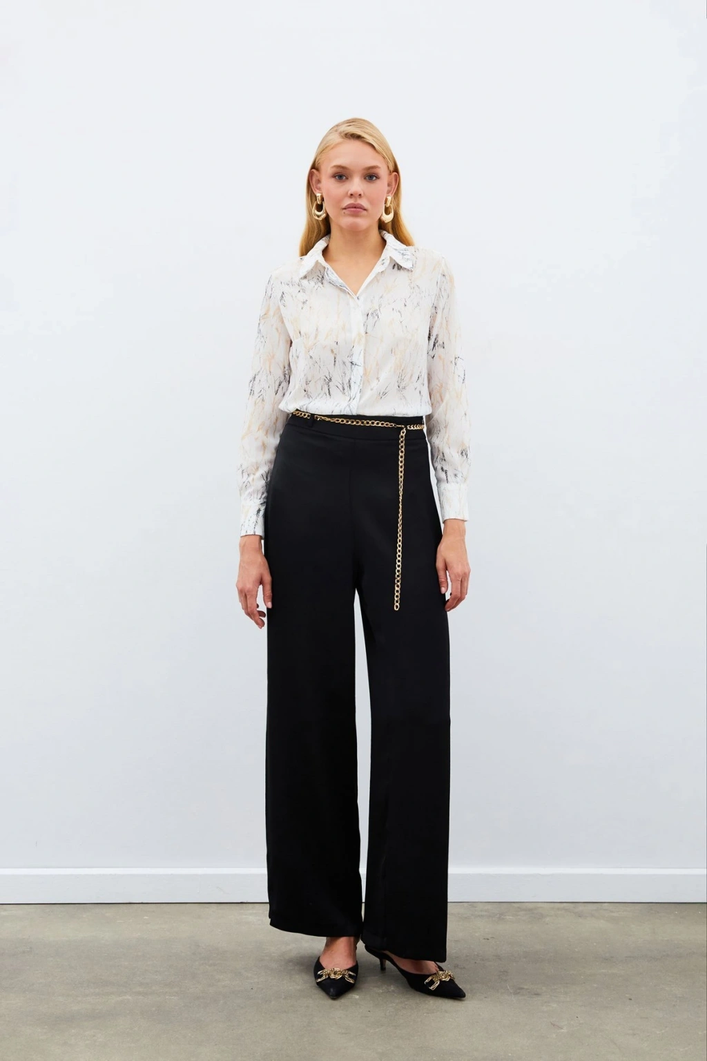 Aksesuarlı Klasik Gömlek - Siyah