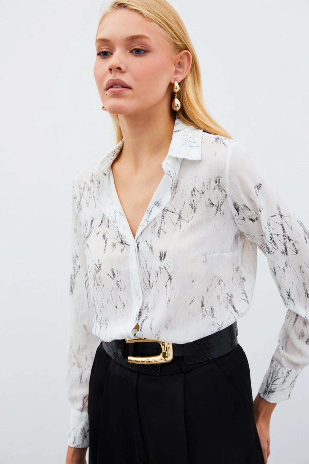 Parlak Desenli Gömlek - Ekru-Gümüş
