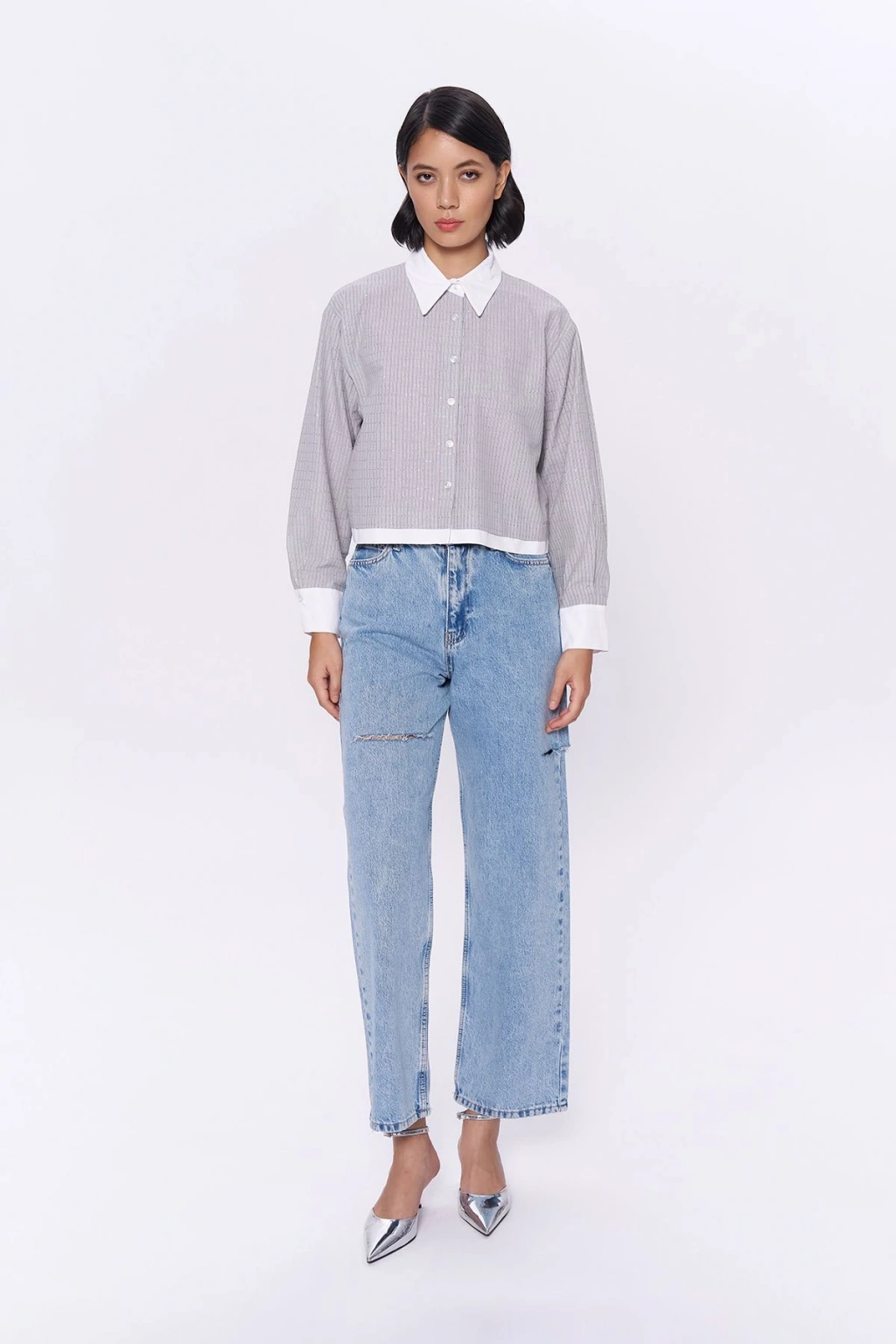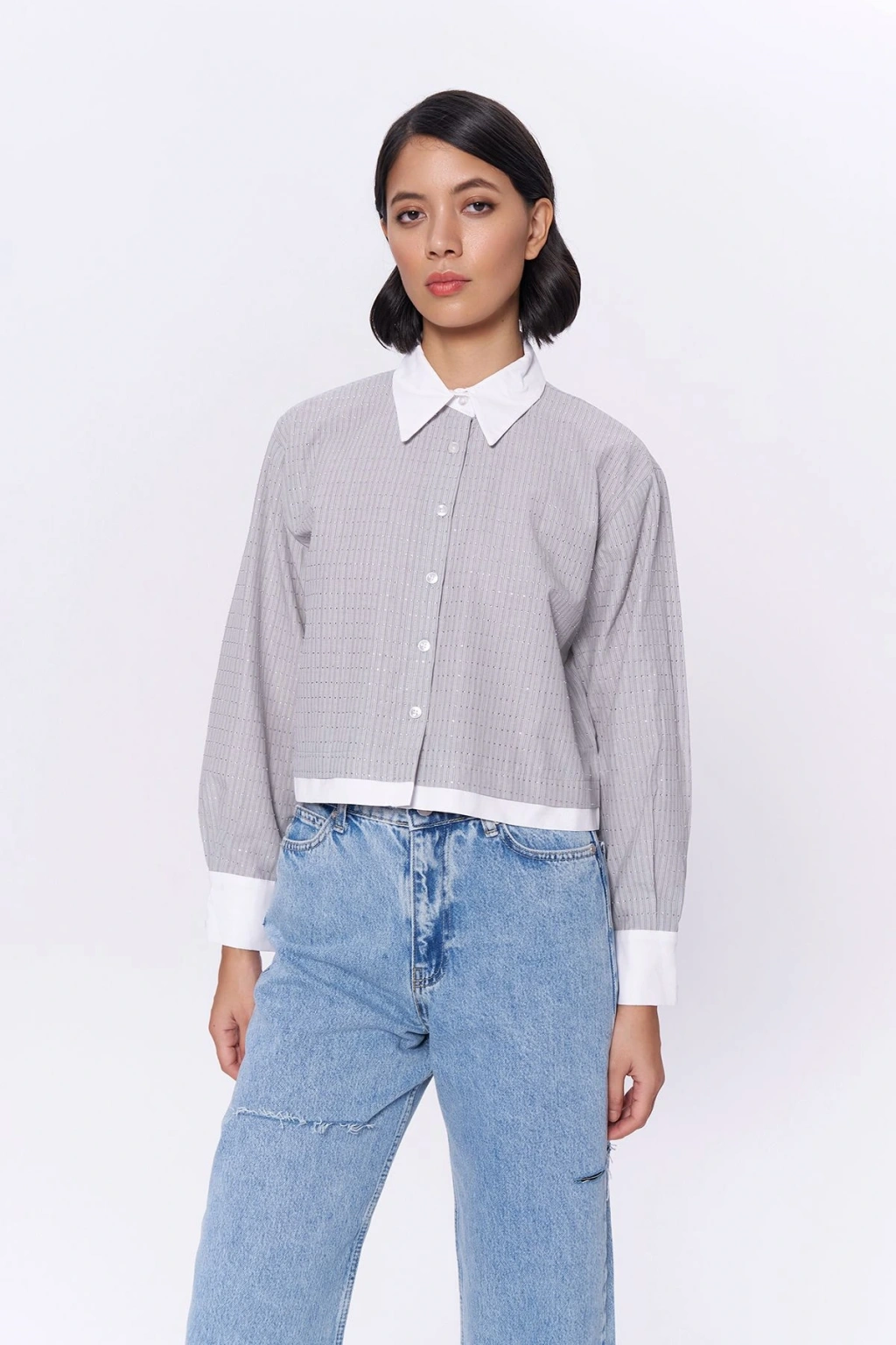 Gömlek yaka tasarımı ile klasik ve şık bir görünüm sunar; Uzun kollu yapısı, mevsim geçişlerinde ideal konfor ve şıklığı bir arada sağlar; Standart boy kesimi sayesinde rahat bir kullanım imkanı tanır; Dokuma kumaş tipi, dayanıklılığı ve nefes alabilirliği ile öne çıkar; Fitted kalıbı vücut hatlarınıza mükemmel uyum sağlayarak zarif bir siluet oluşturur; Crop silueti modern ve dinamik bir tarz yaratmanız için idealdir; Trock / taş baskı tekniği ile detaylara verilen önem, gömleğe benzersiz bir parlaklık kazandırır; Taş aksesuar detayları ile göz alıcı bir dokunuş ekler ve stilinizi tamamlar; Uzun kol tasarımı mevsim geçişlerinde ideal koruma sunarken, düğmeli kapama şekli pratik kullanım sağlar; Casual ortamlarda günlük kullanım için uygundur; rahatlığı ve şıklığı bir arada sunar; Basic koleksiyonun parçası olarak, zamansız parçalar arasında yerini alır;
