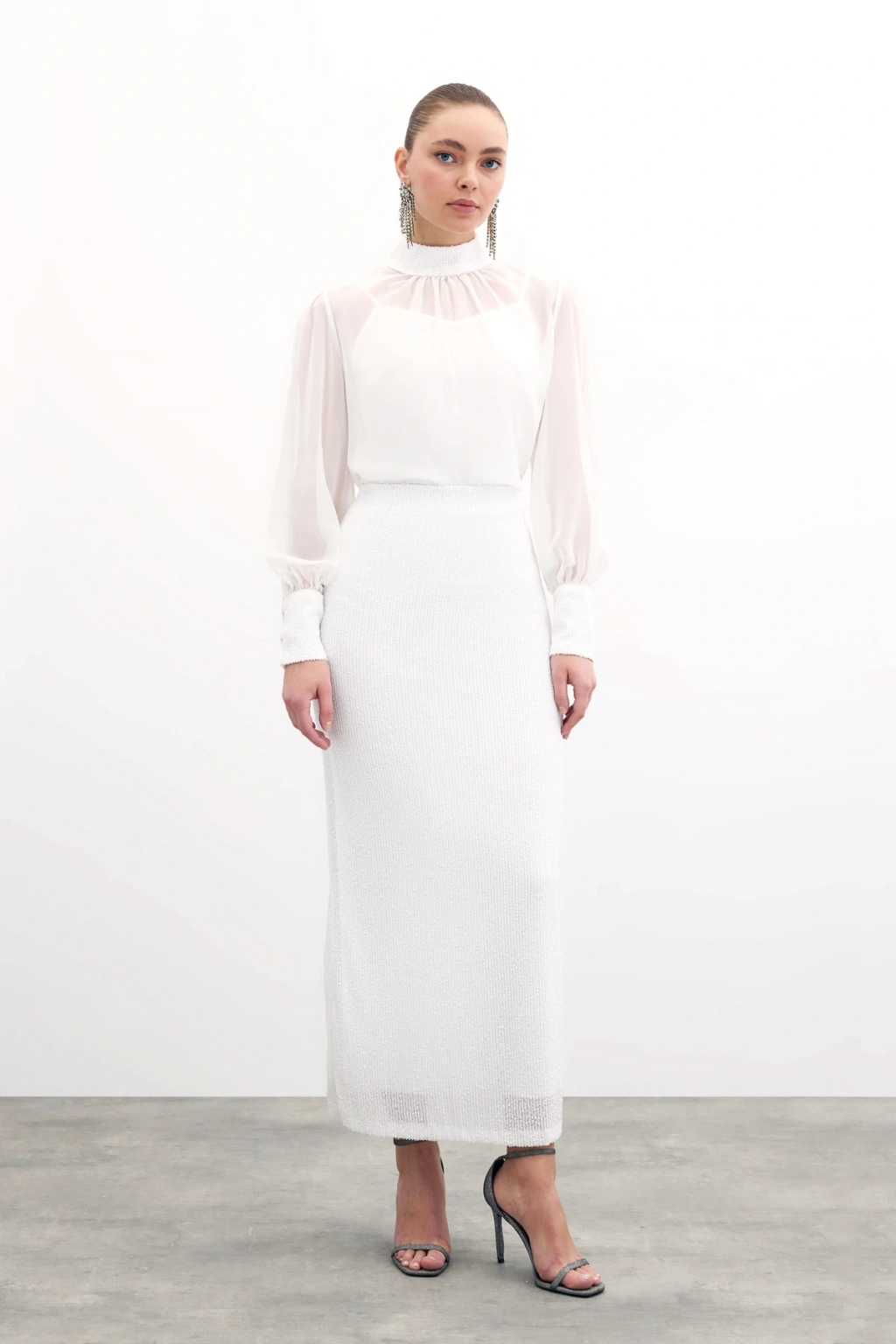 Payet Detaylı Bluz - Ekru