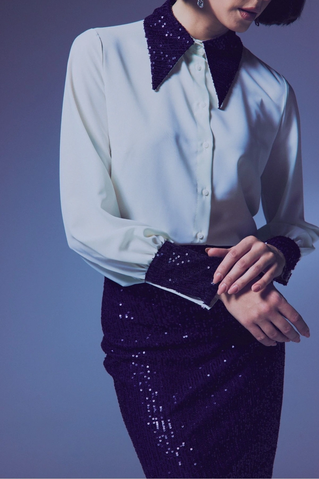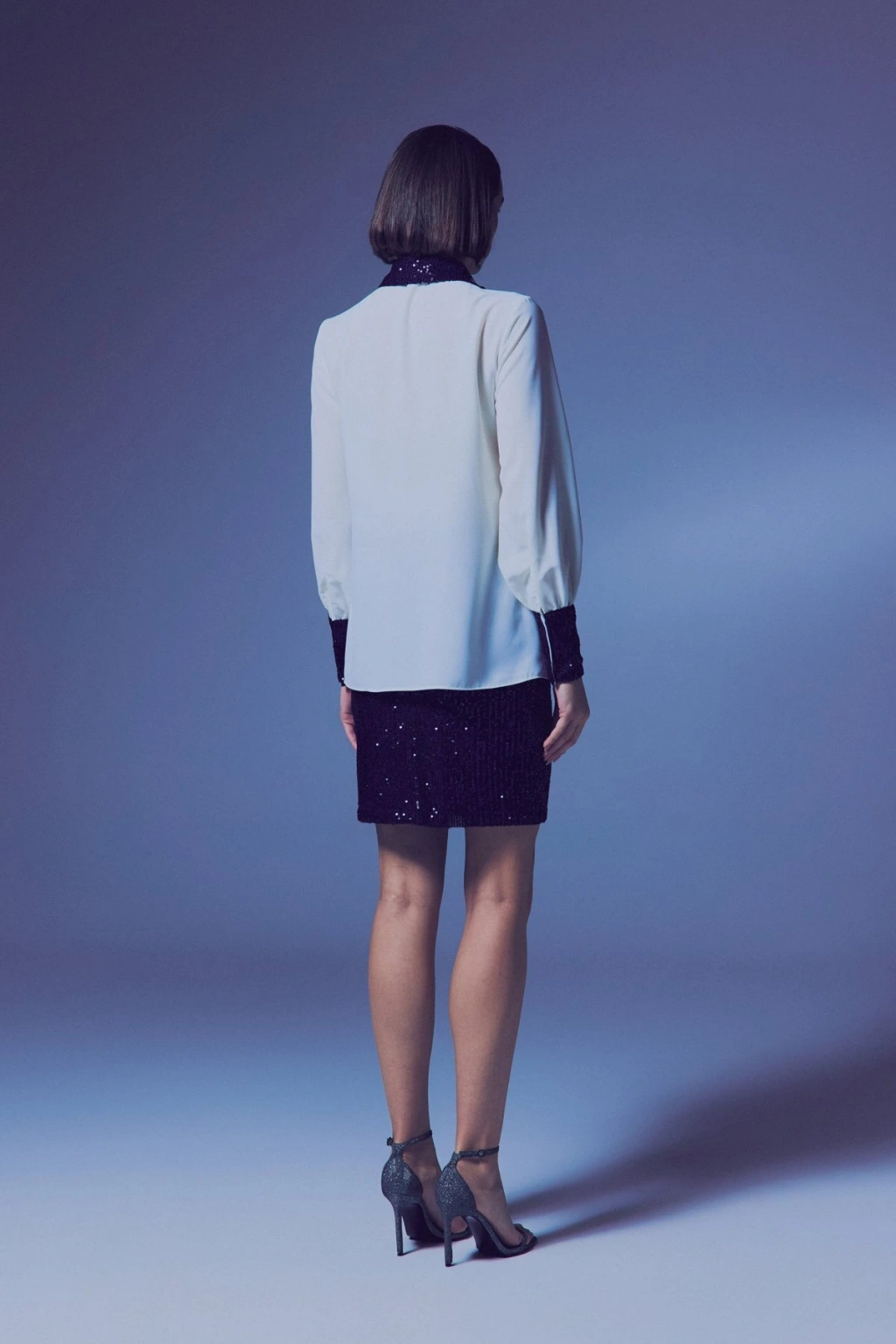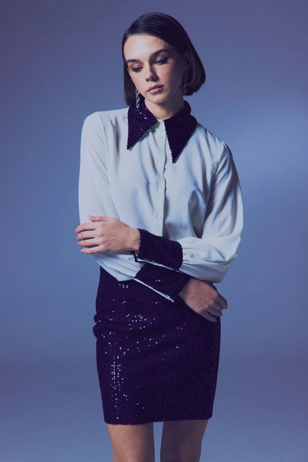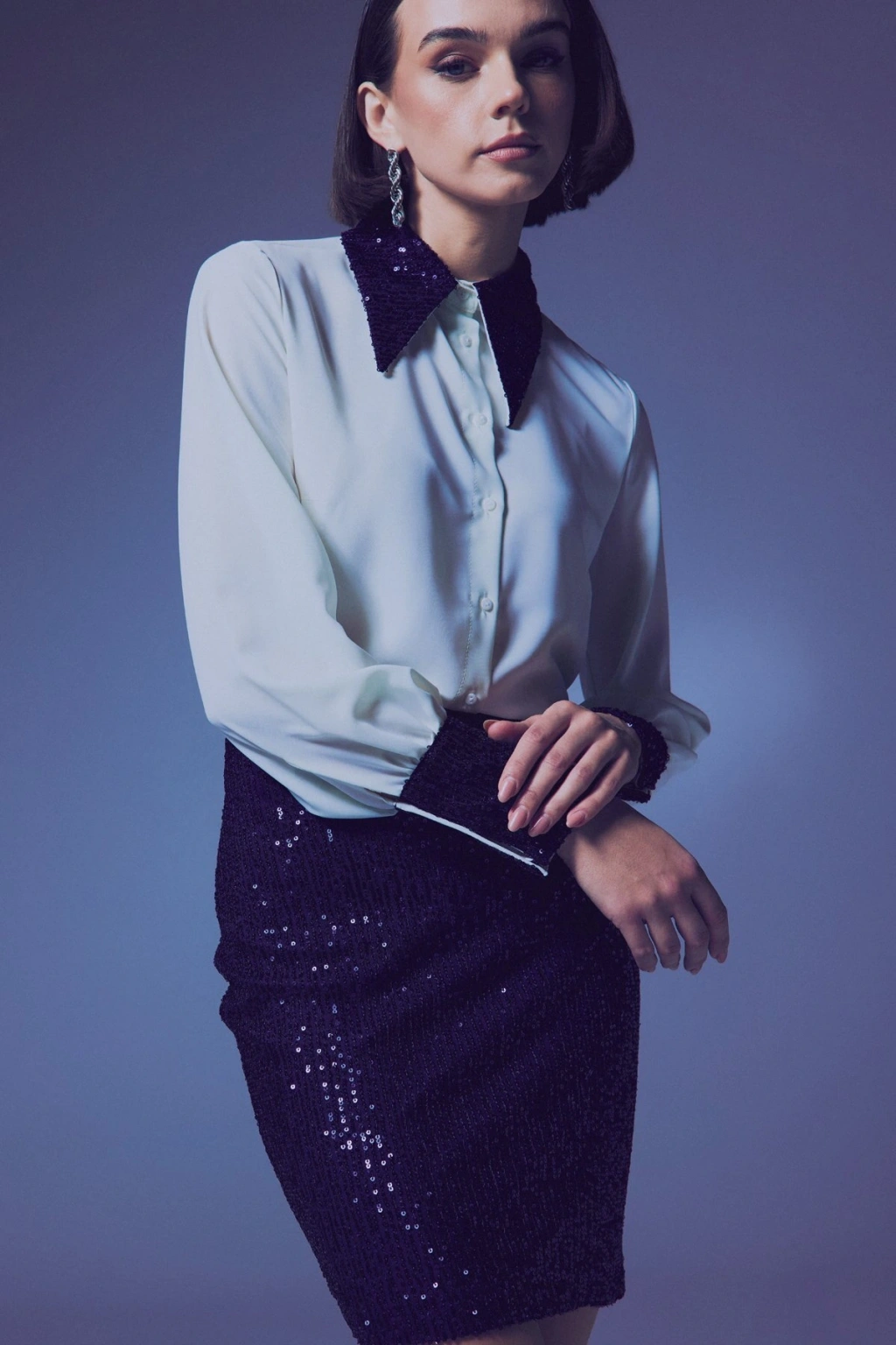 Payet Detaylı Gömlek - Ekru-Lacivert