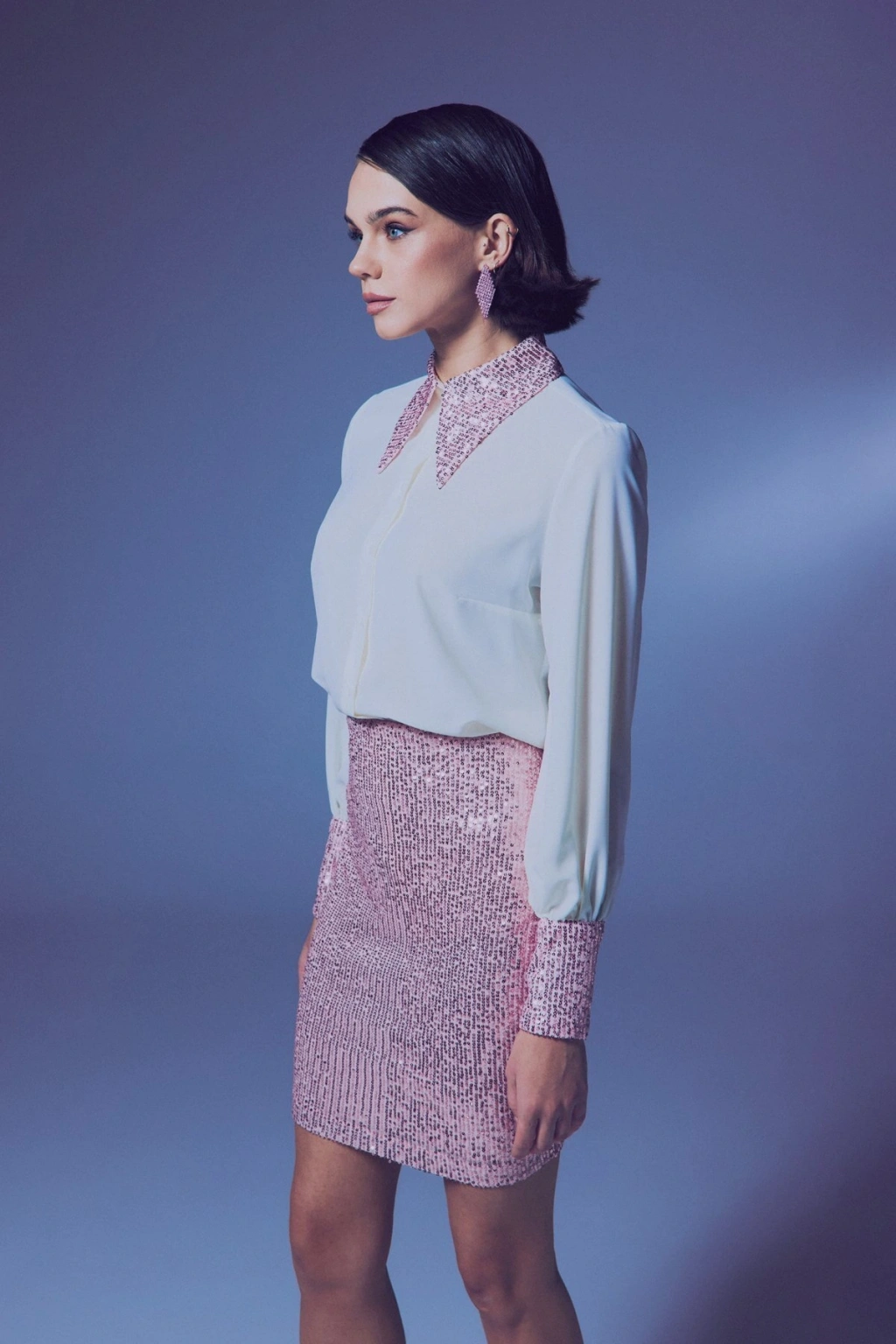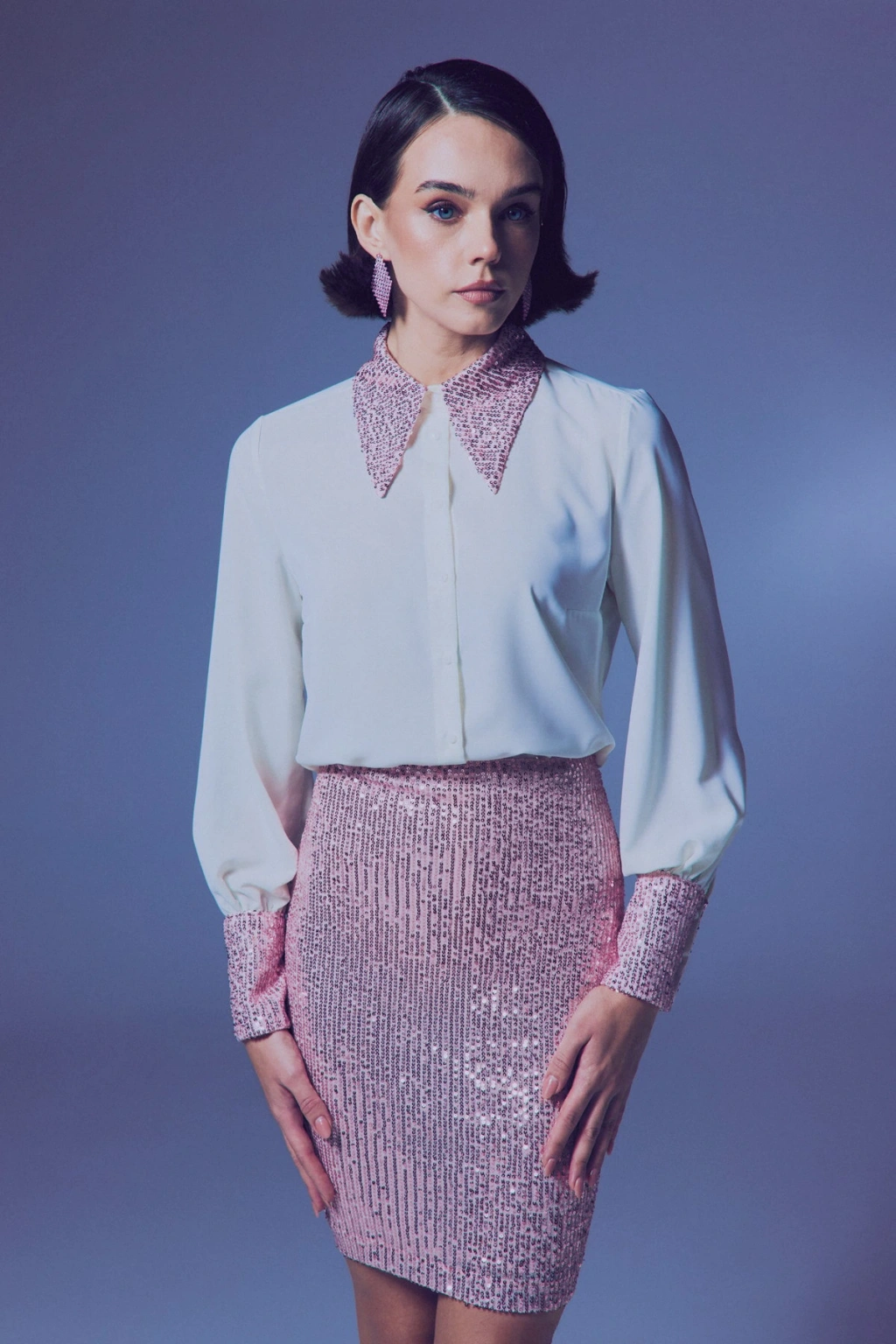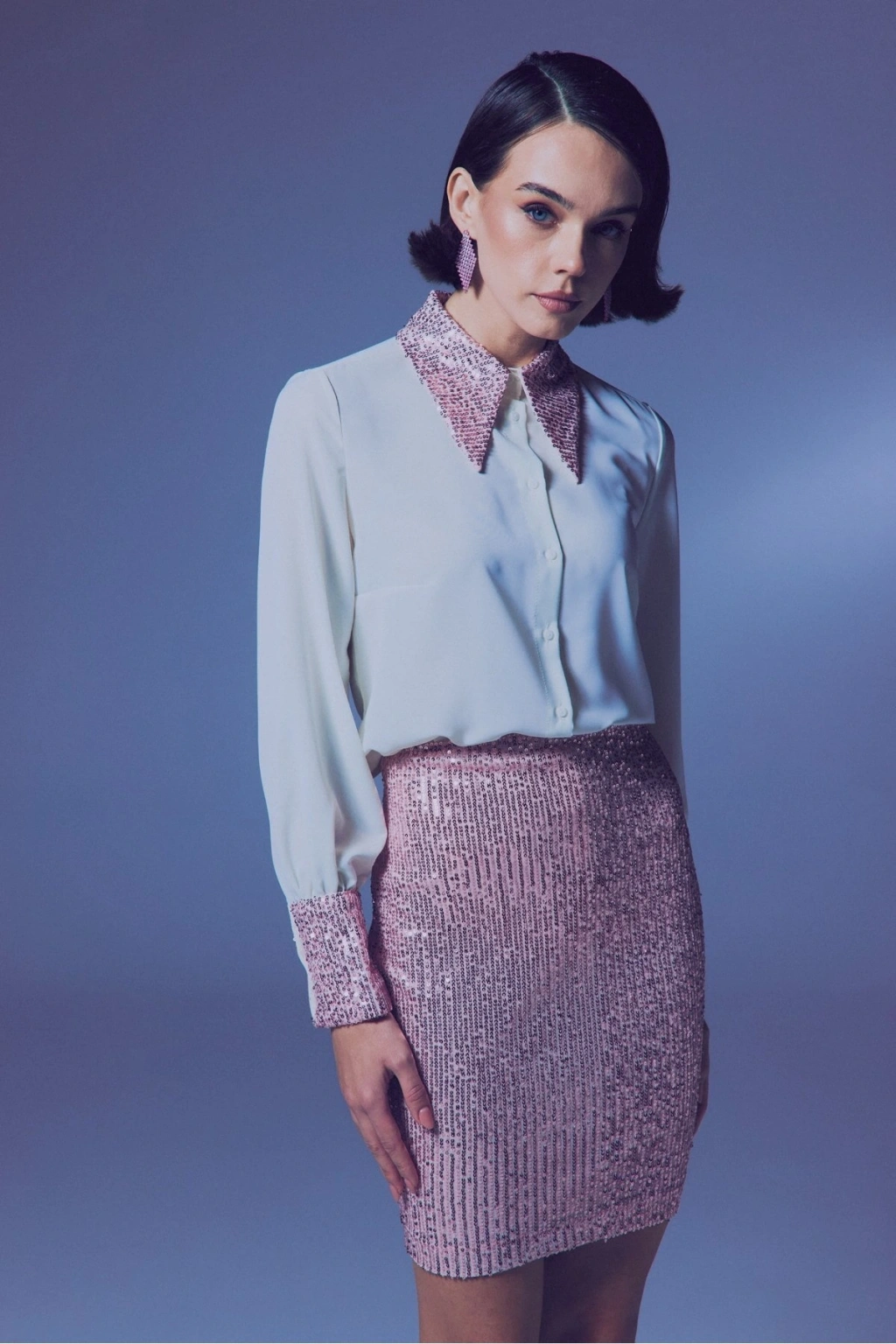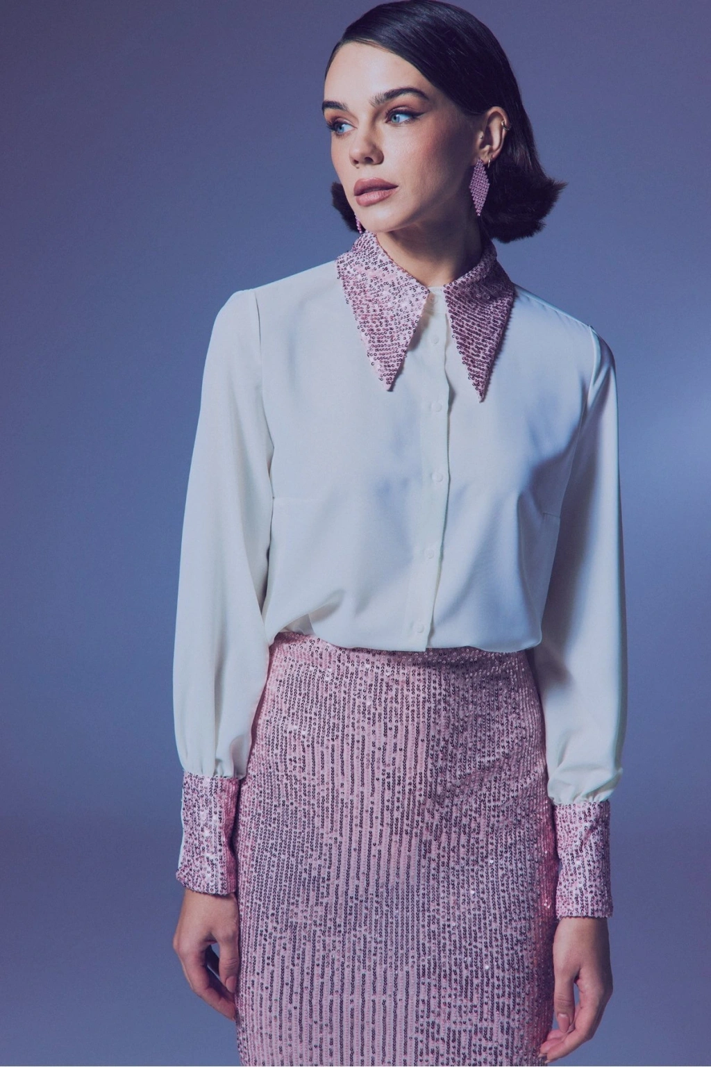 Payet Detaylı Gömlek - Ekru-Pudra