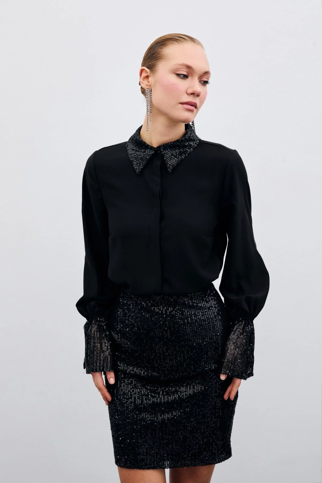 Payet Detaylı Gömlek - Siyah