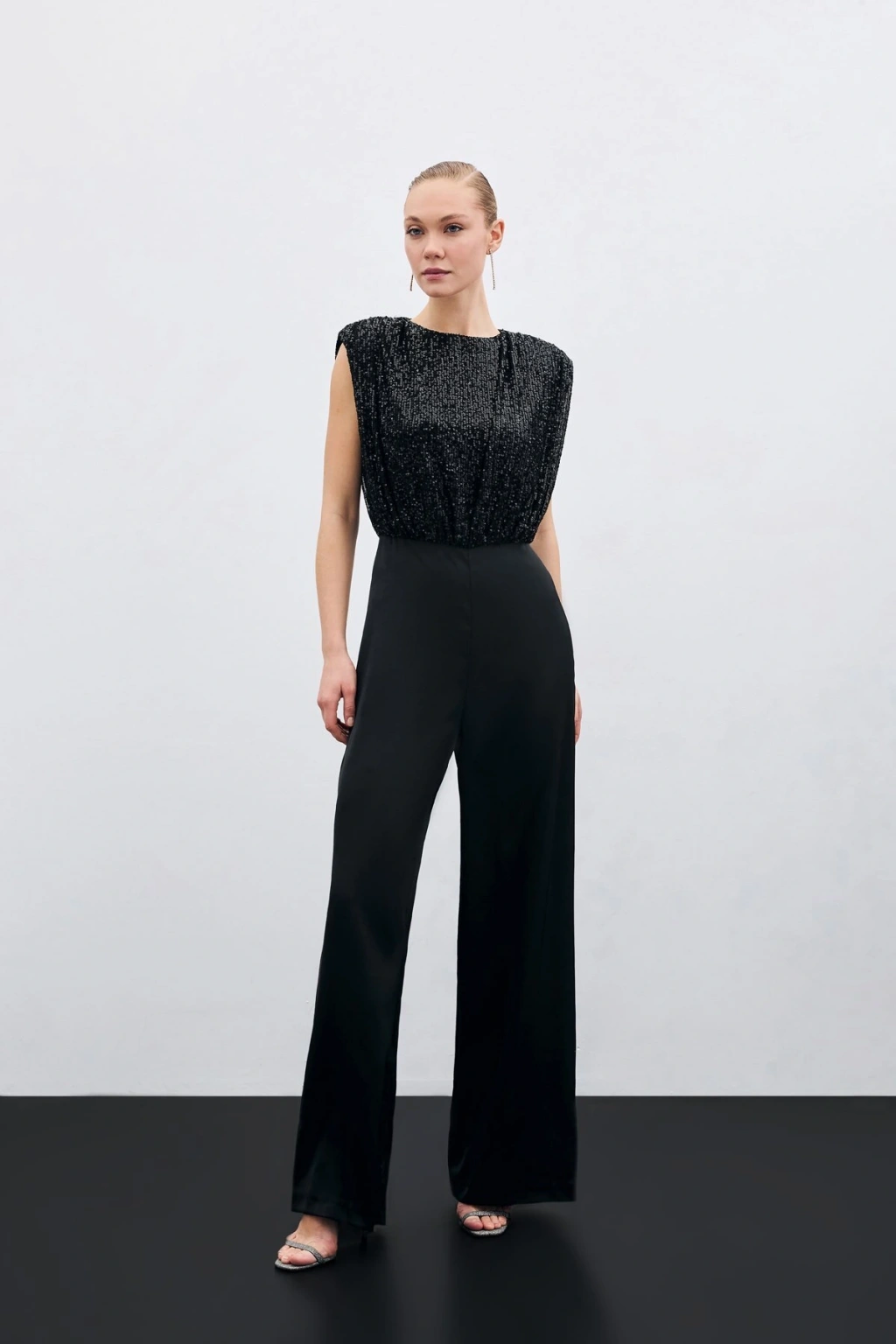Kemerli Geniş Paça Straplez Keten Tulum Naturel