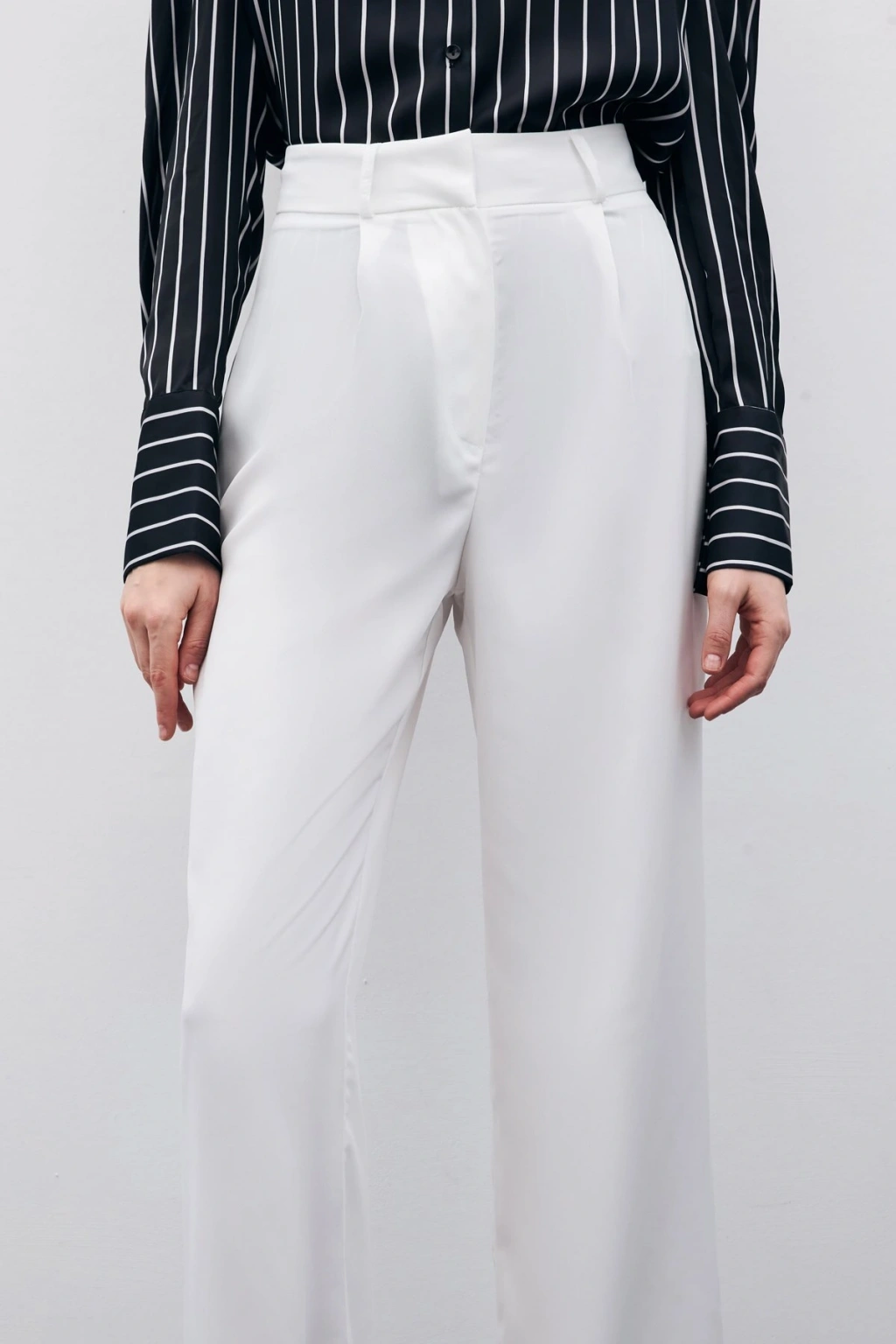 Pileli Krep Pantolon - Ekru