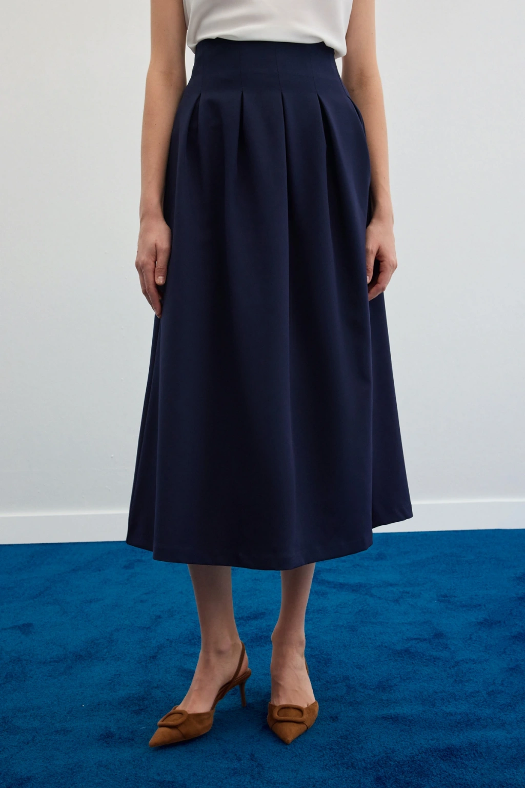 Gold Aksesuarlı Uzun Etek - Sax Mavi