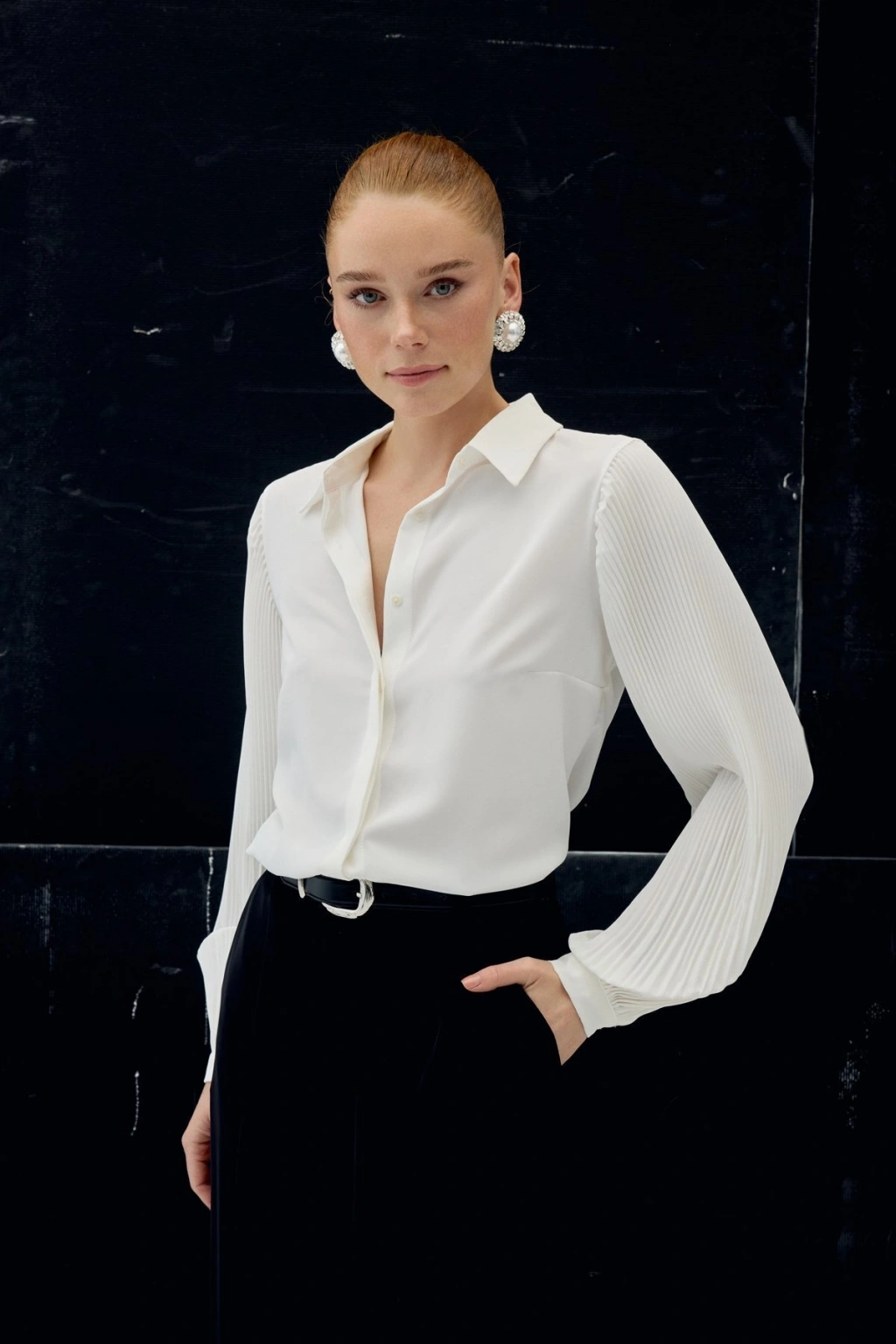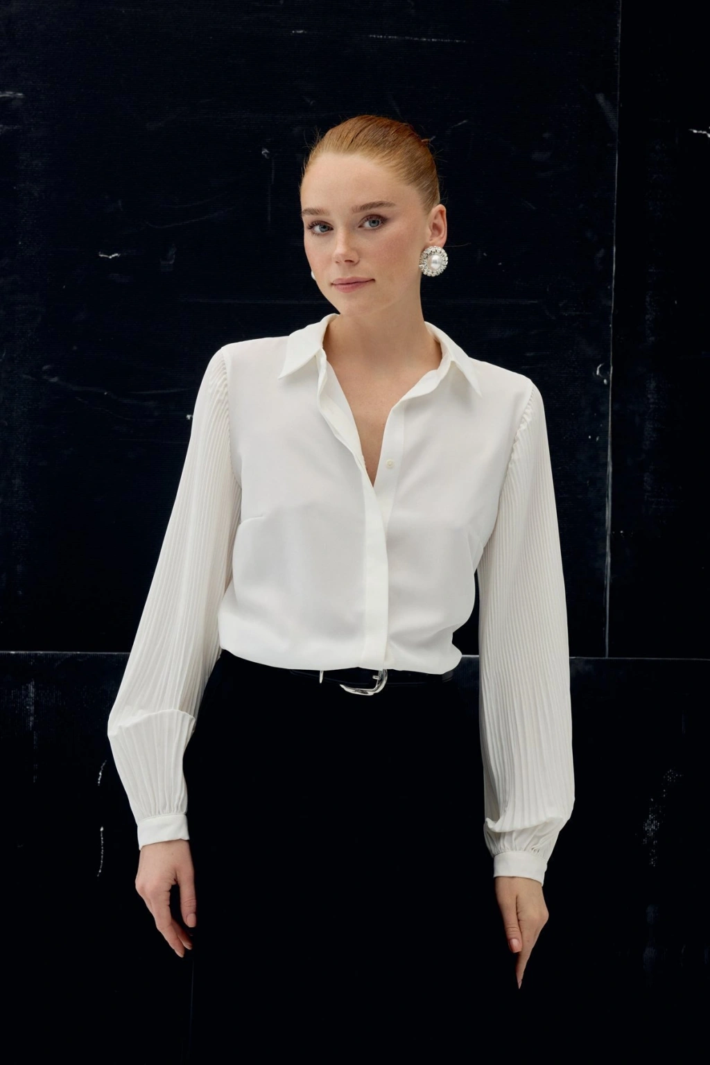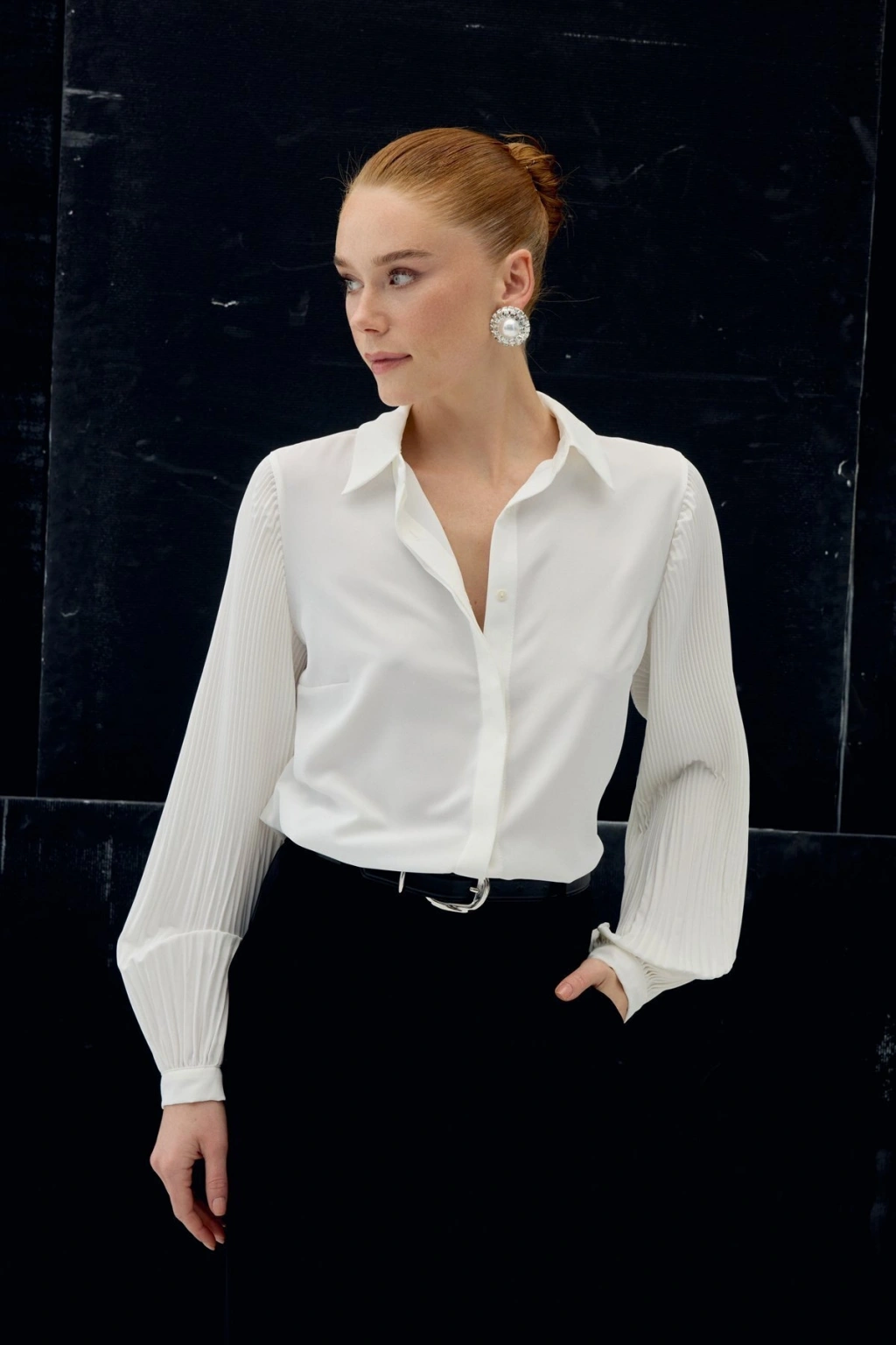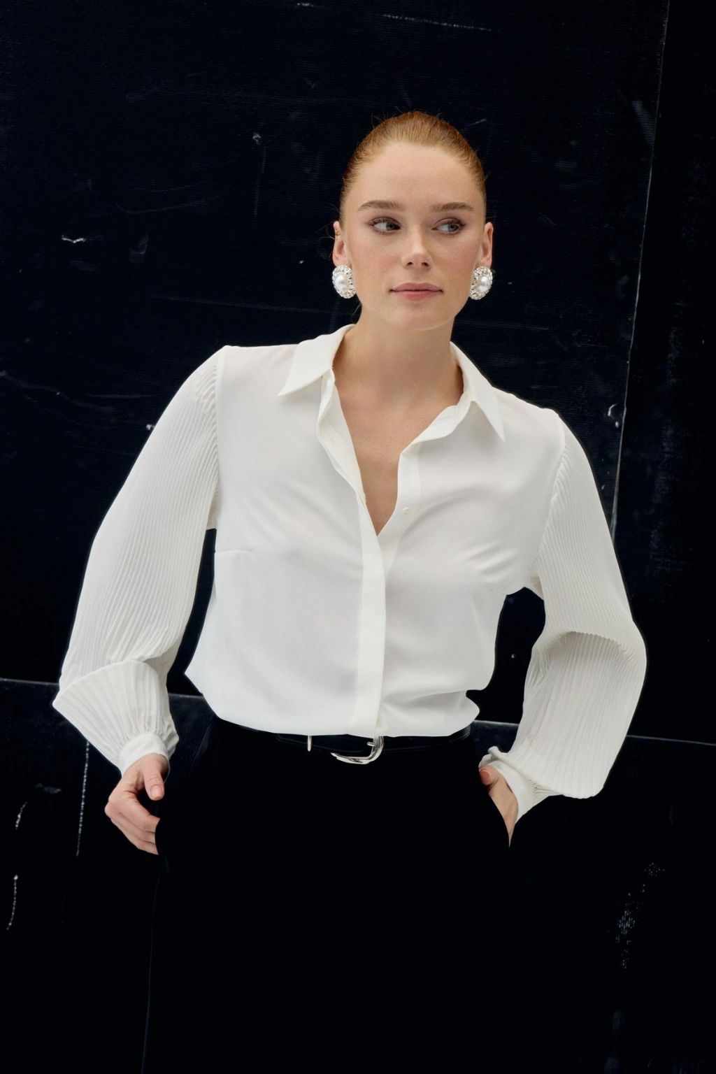 Zincir Aksesuarlı Düz Gömlek - Ekru