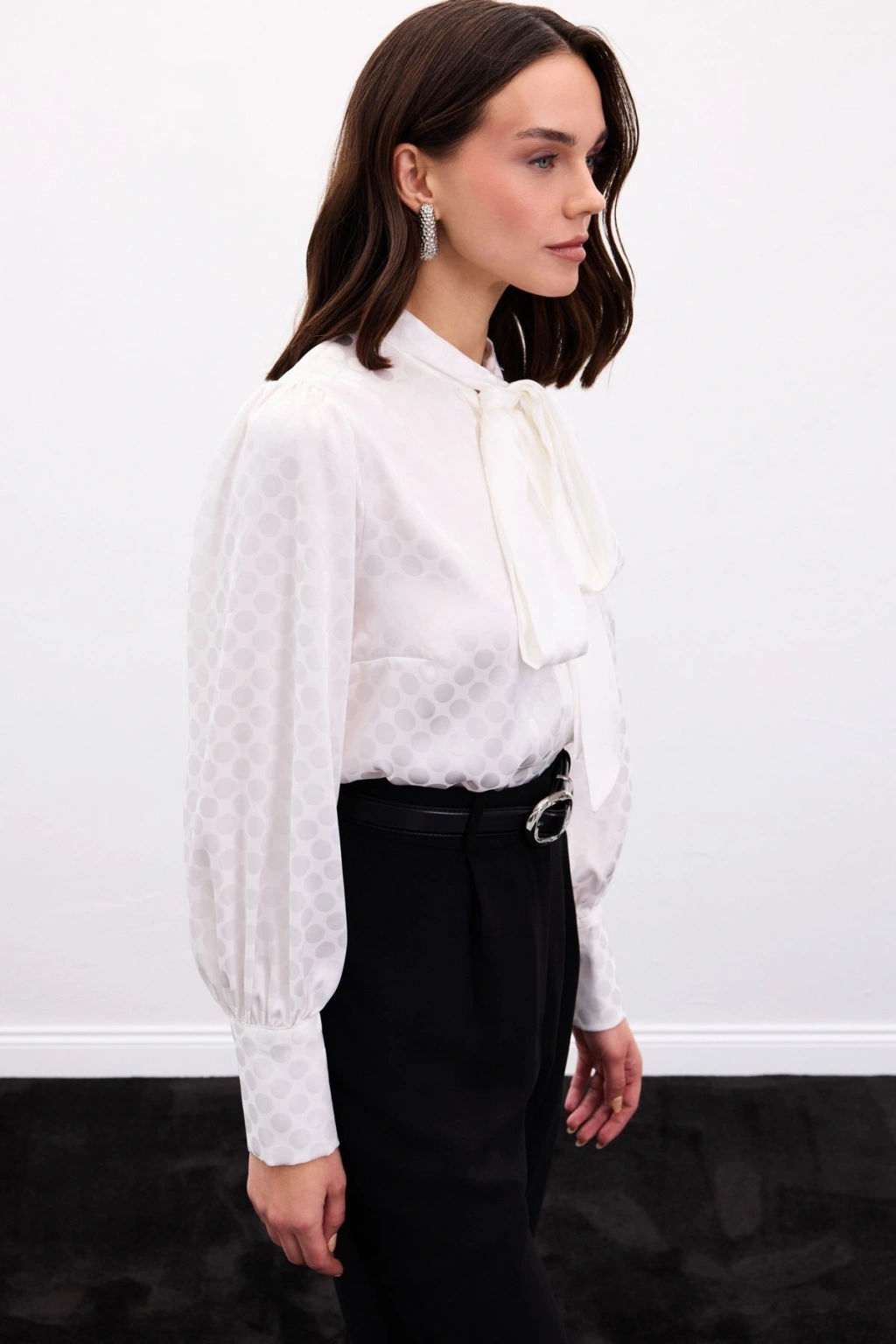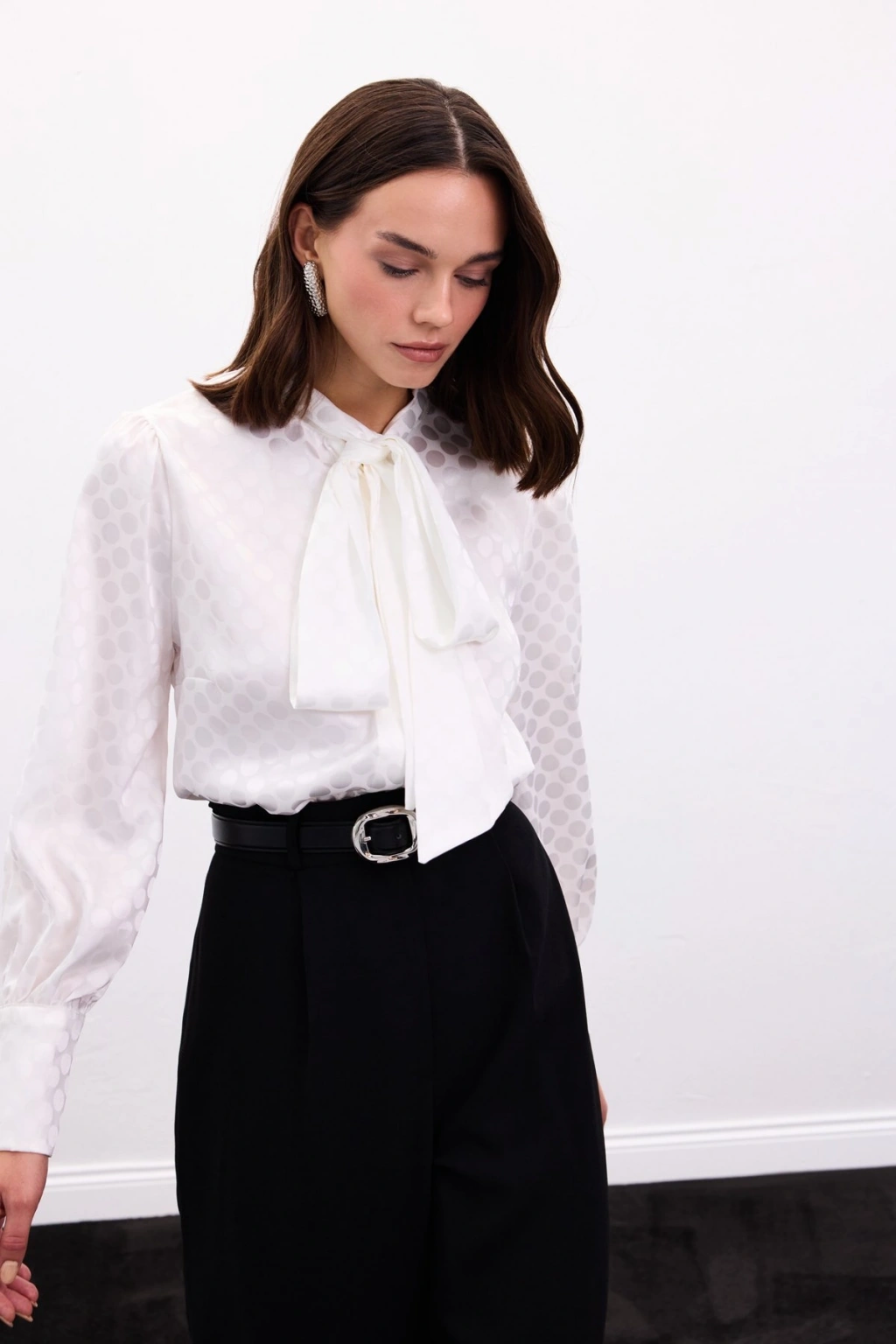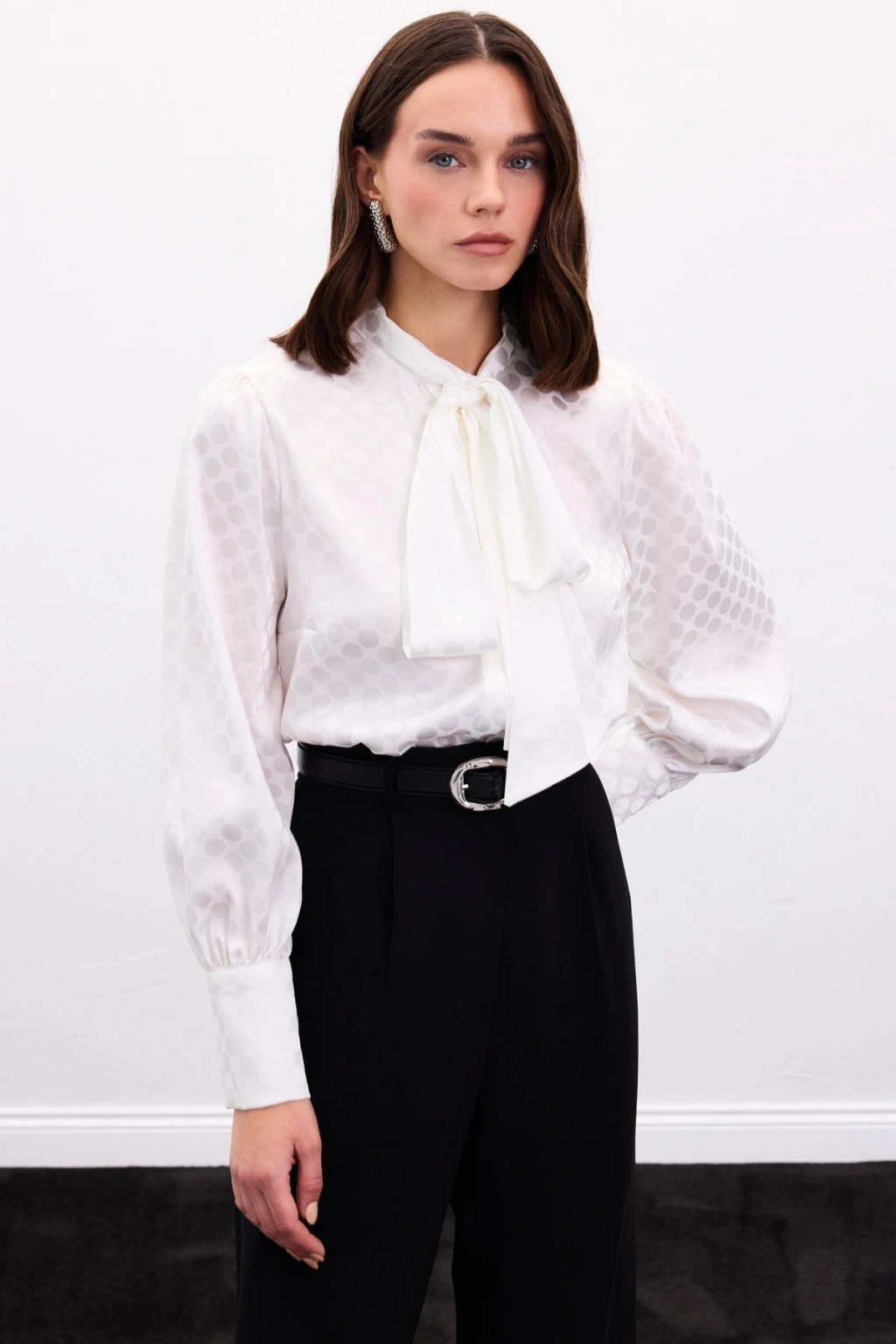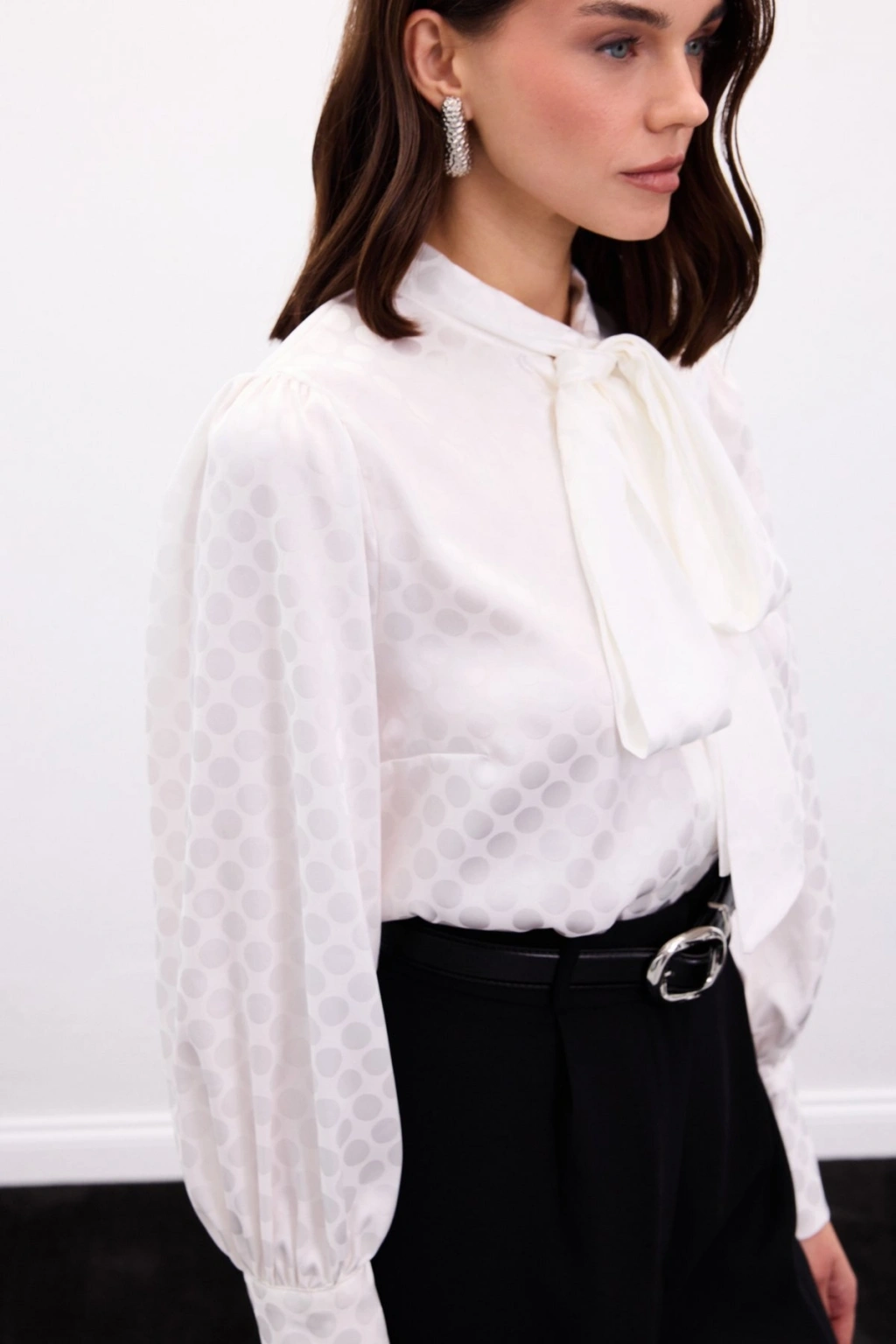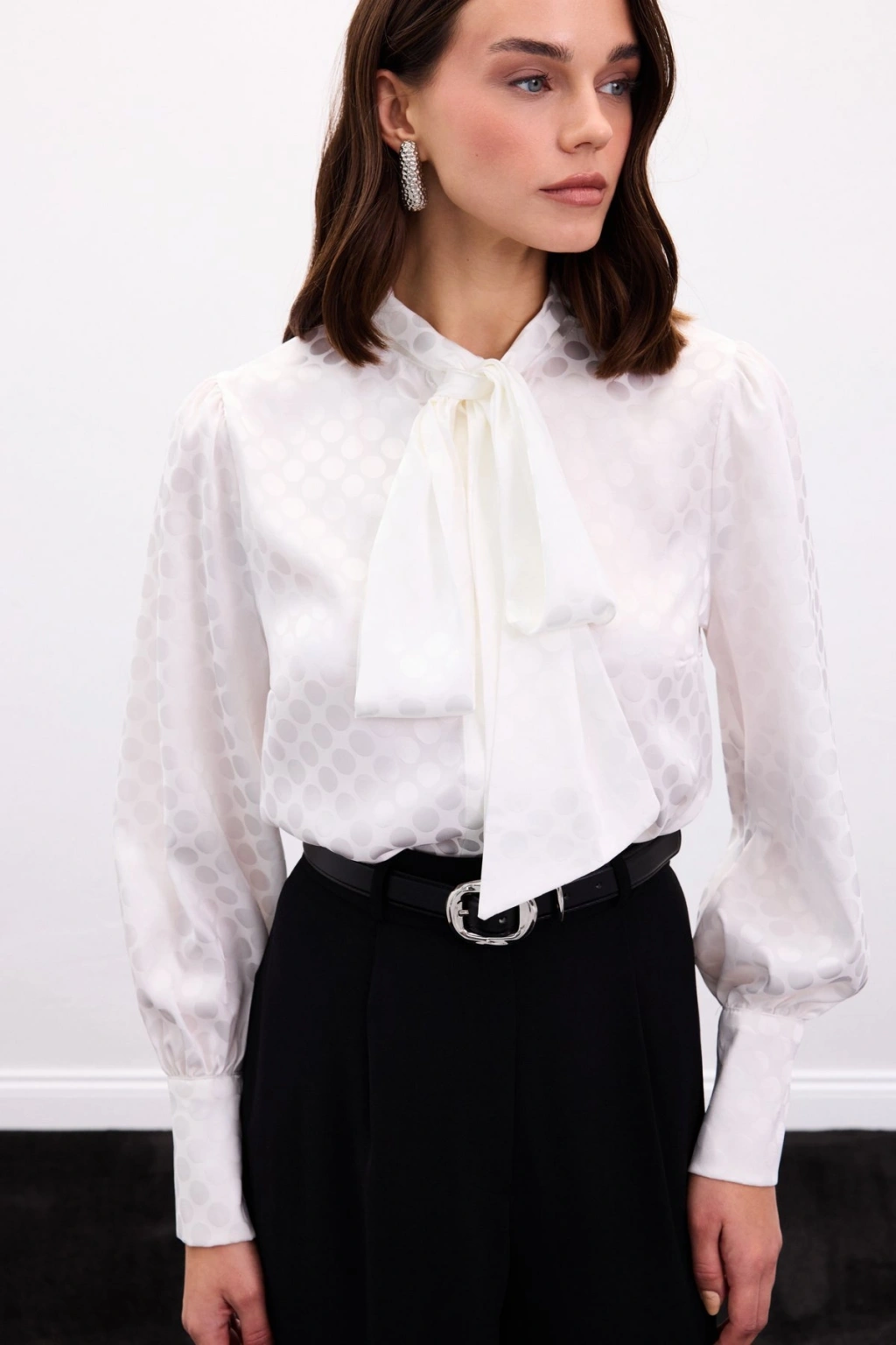 Fularlı Gömlek - Ekru
