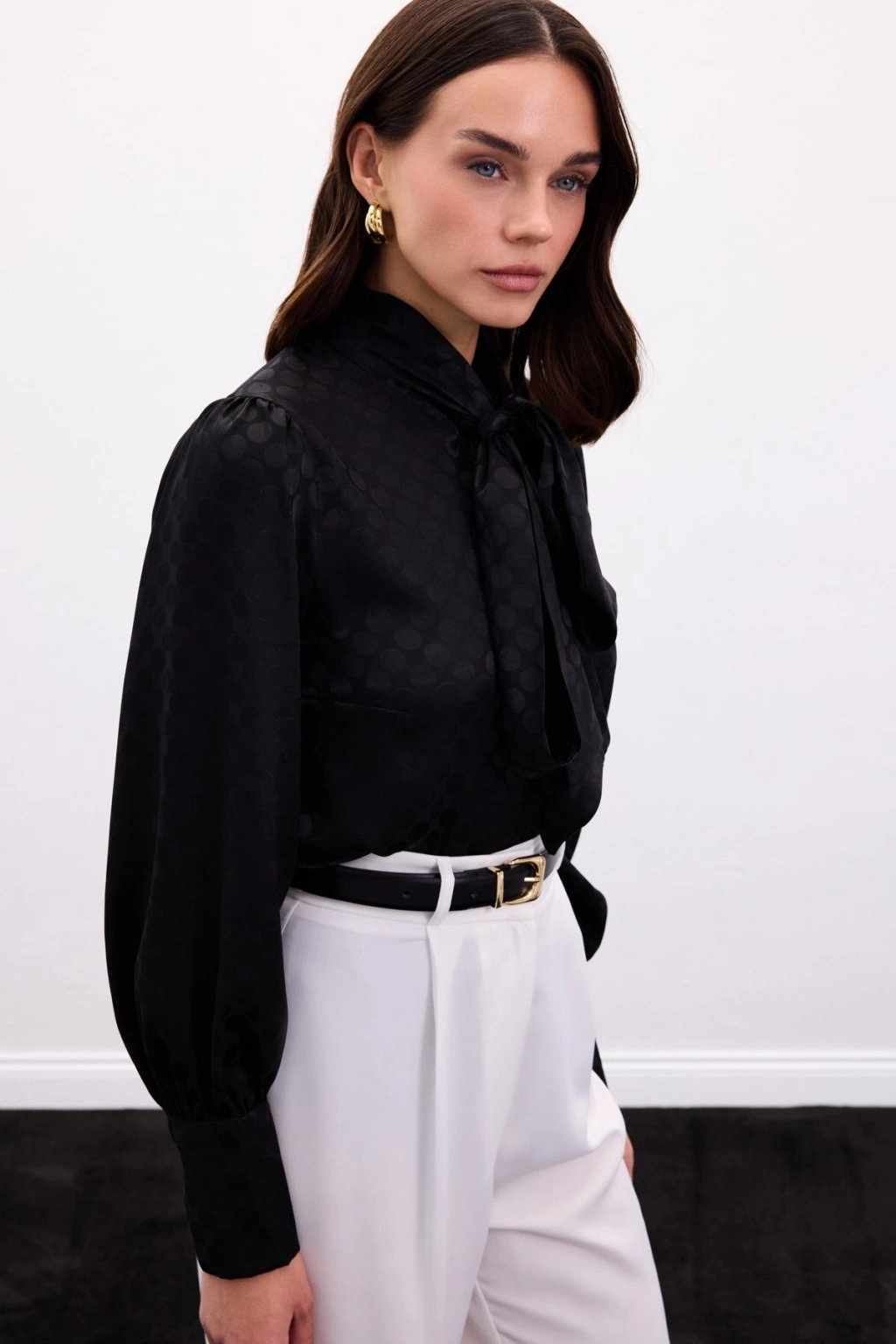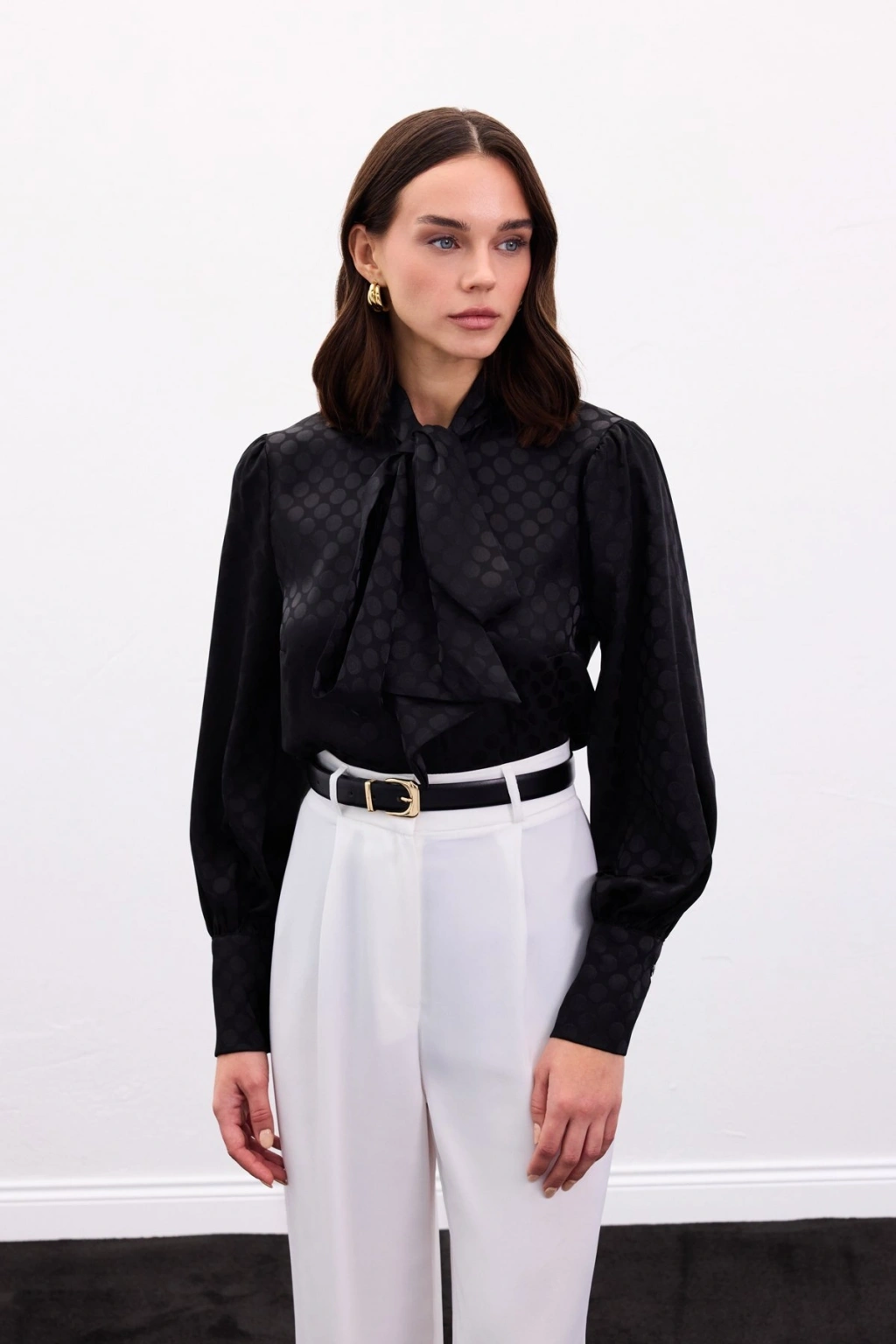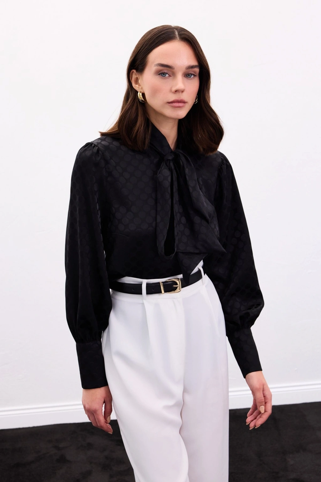 Fularlı Gömlek - Siyah
