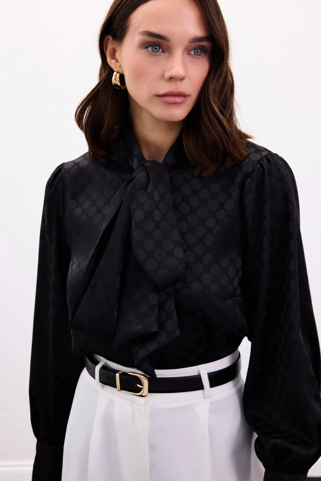 Fularlı Gömlek - Ekru