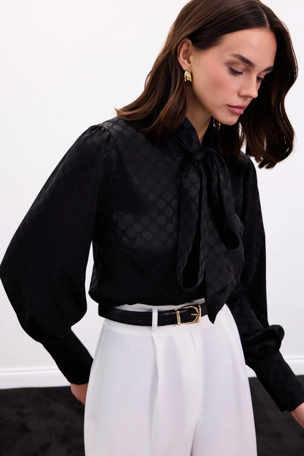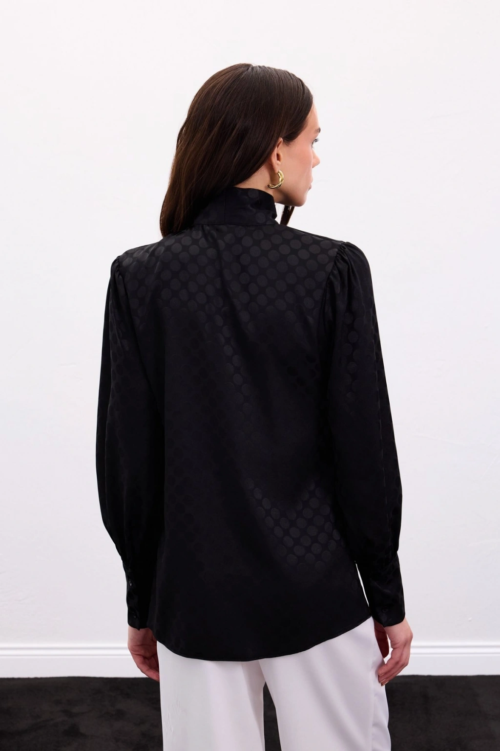 Puantiye Desenli Gömlek - Siyah
