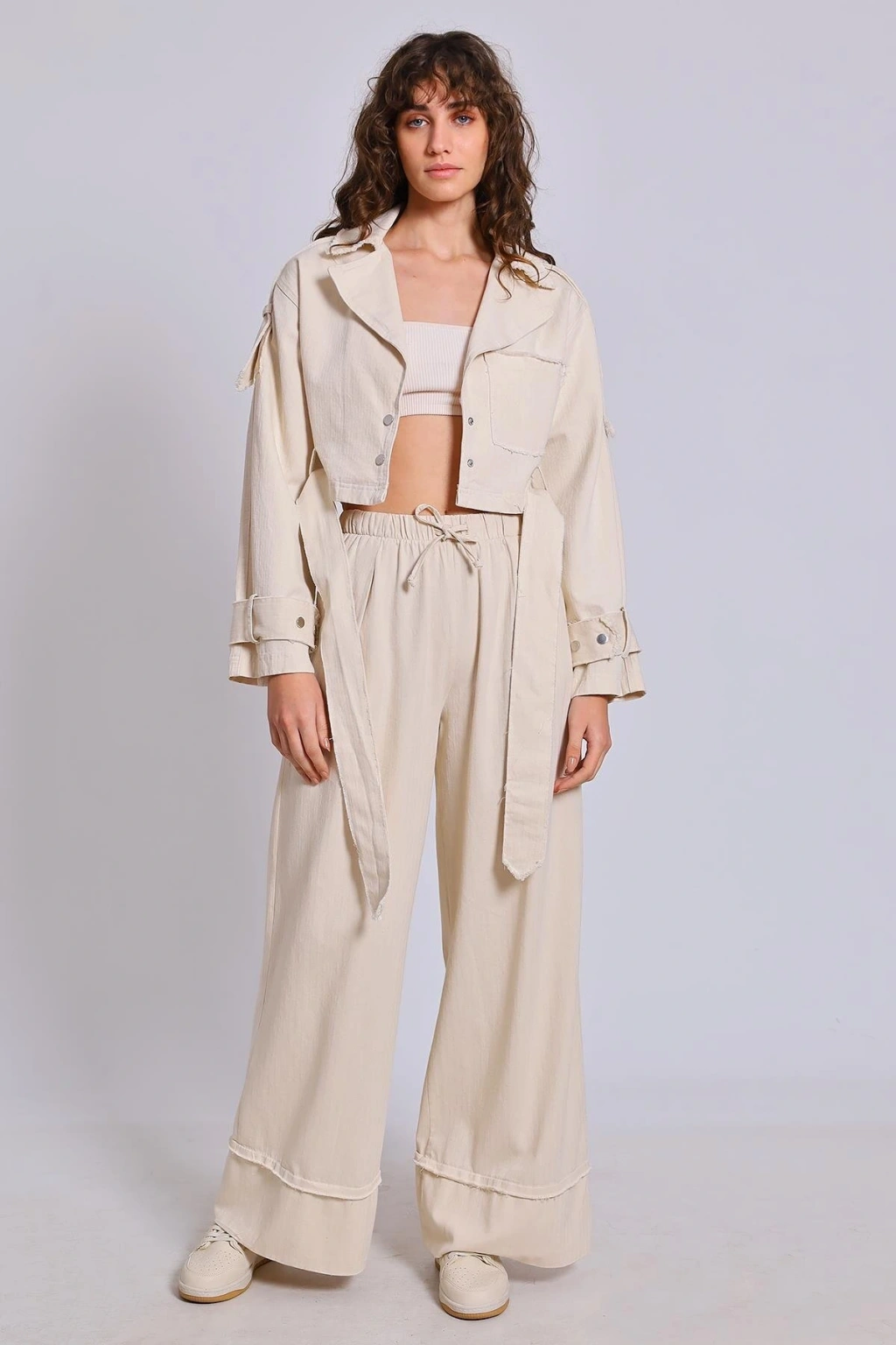 Kemer Aksesuarlı Yuvarlak Yaka Ceket Siyah