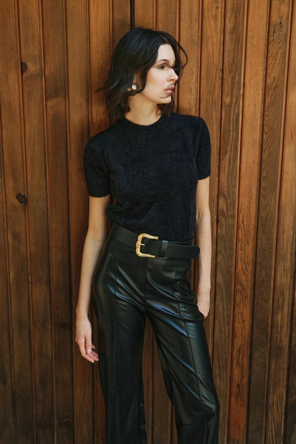 Aksesuar Kuşaklı Kolsuz Bluz - Siyah