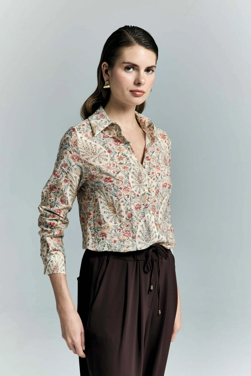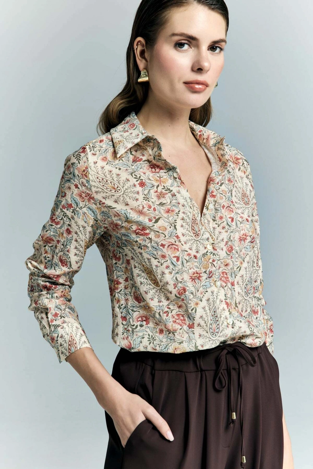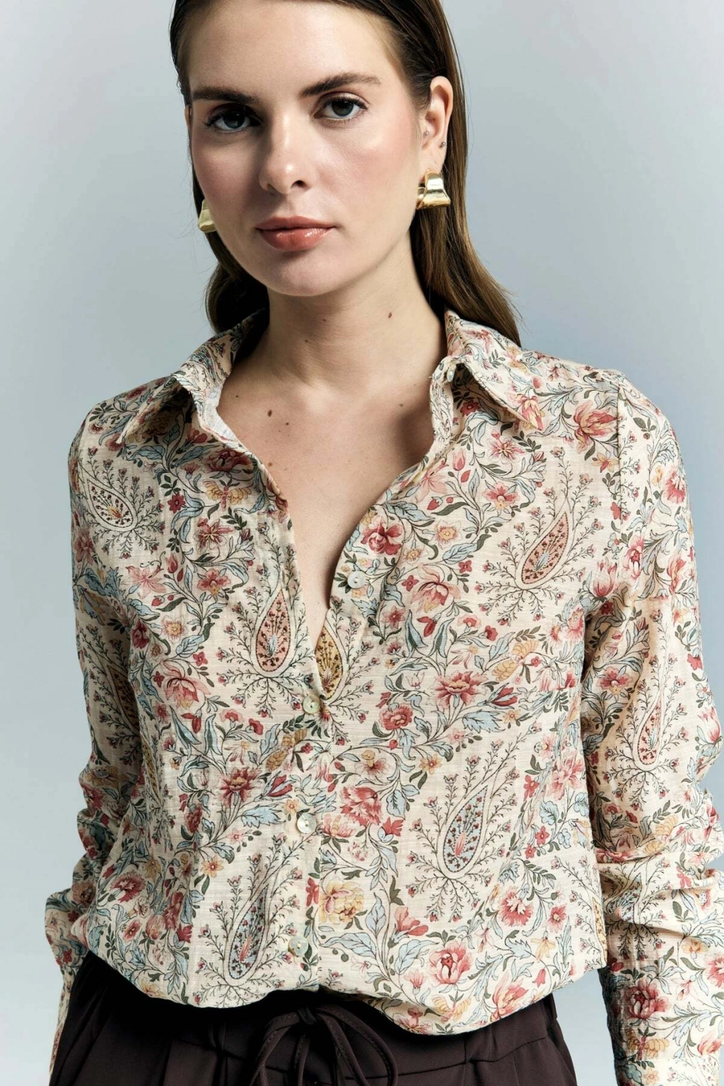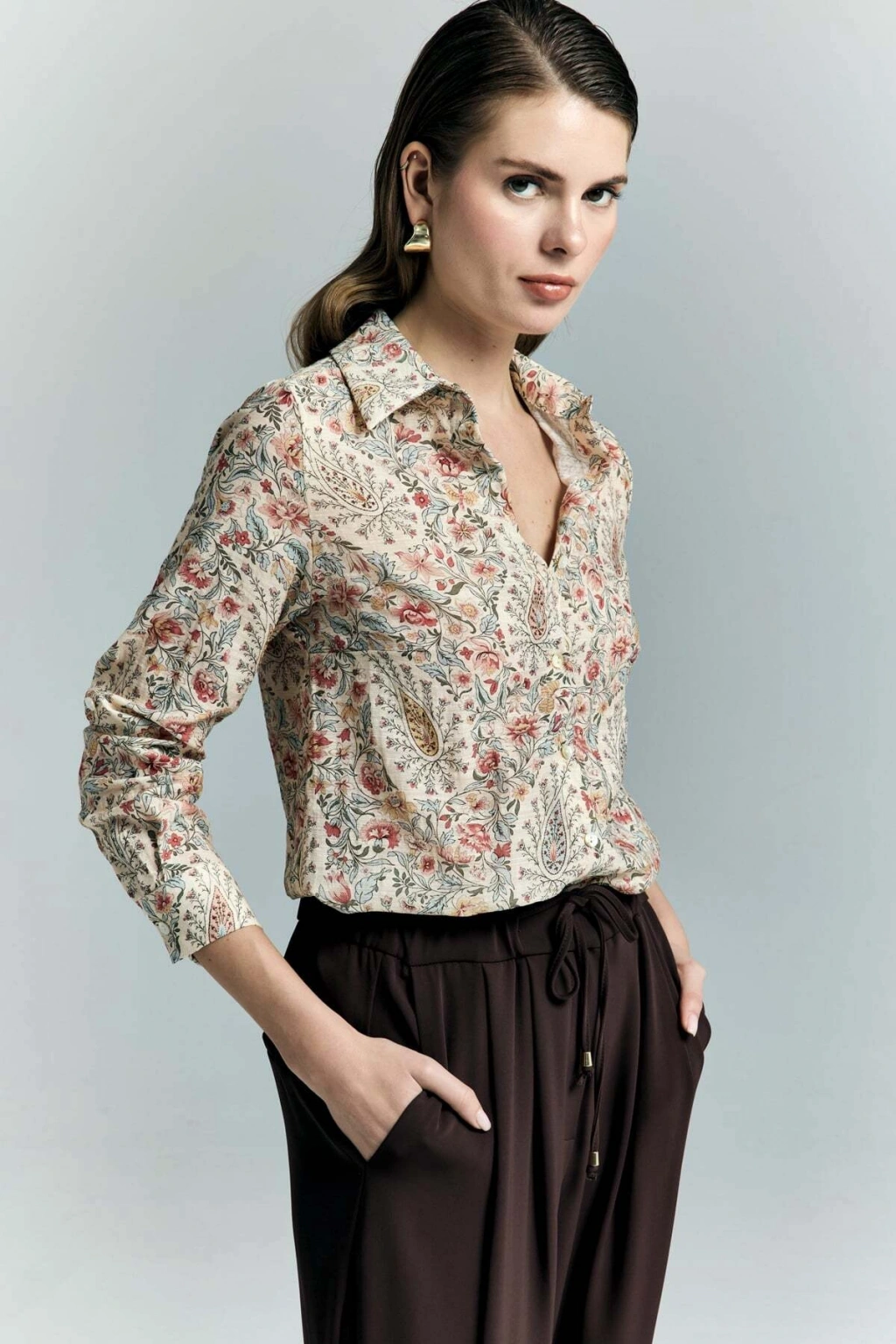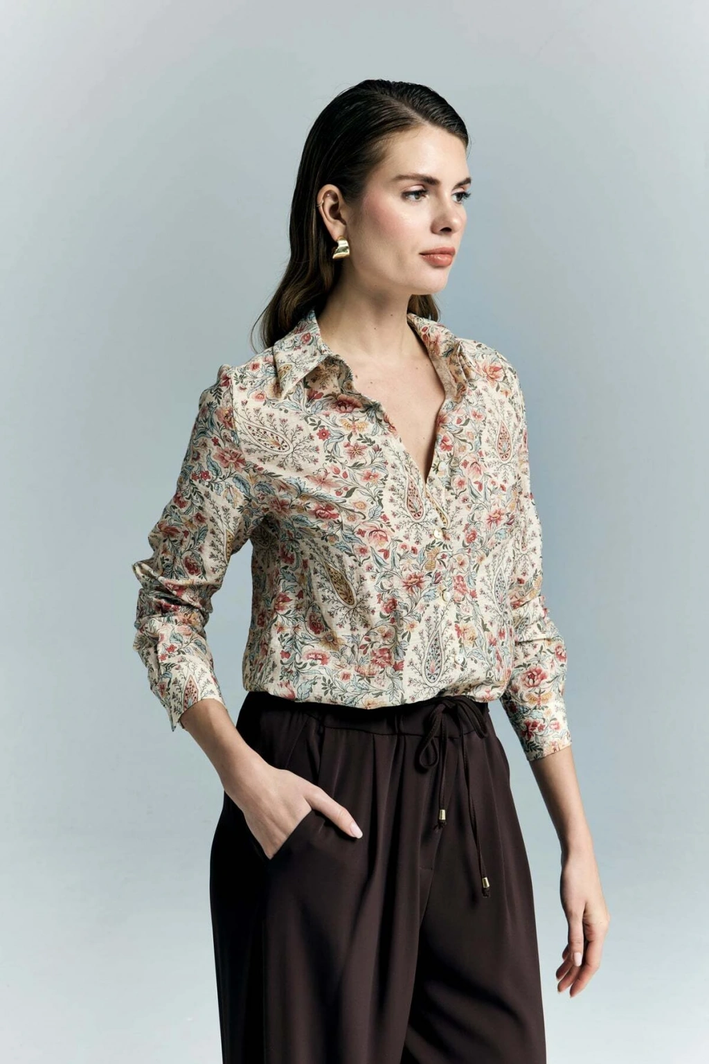 Şal Desen Kolu Katlamalı Gömlek - Pembe