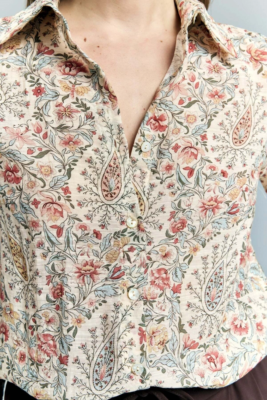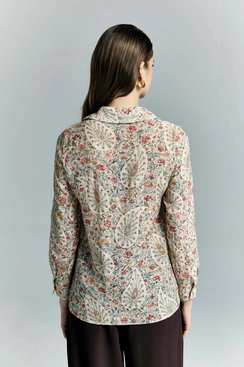 Fırfır Detaylı Nakışlı Gömlek - Ekru