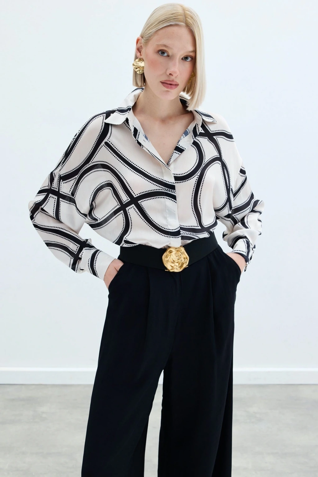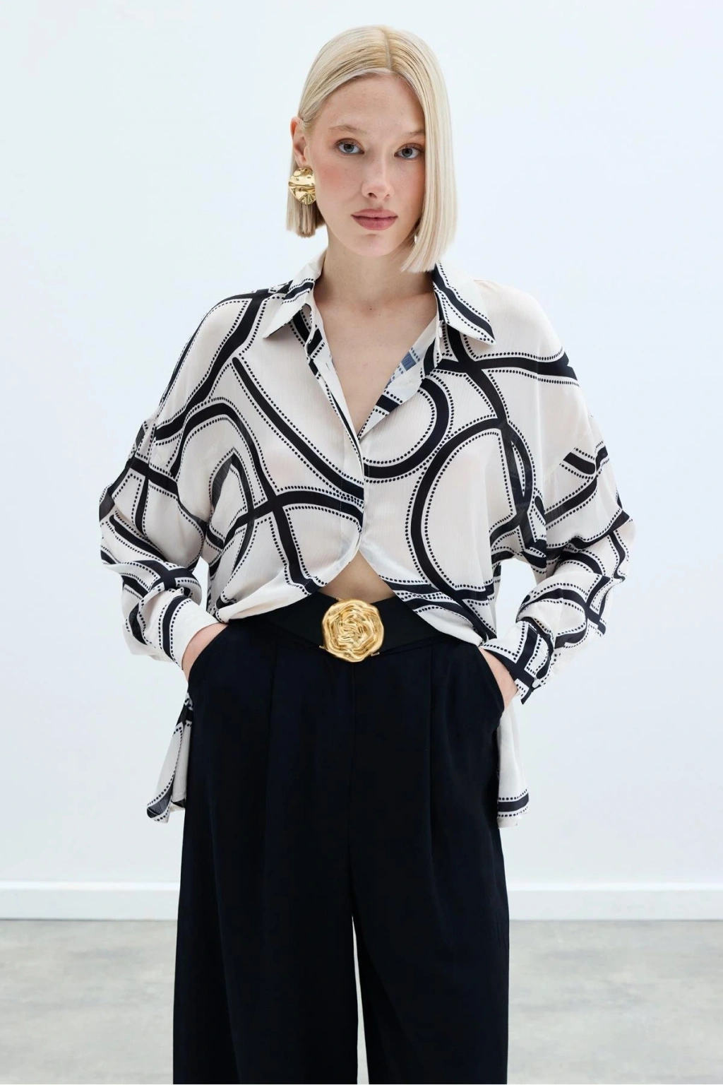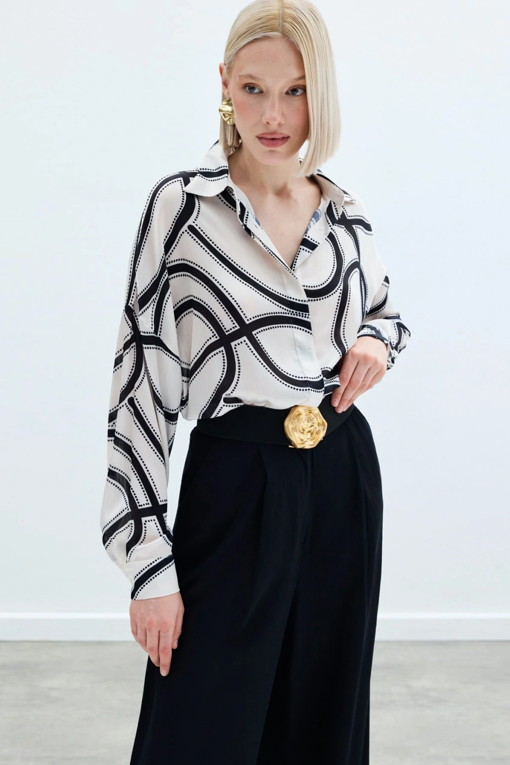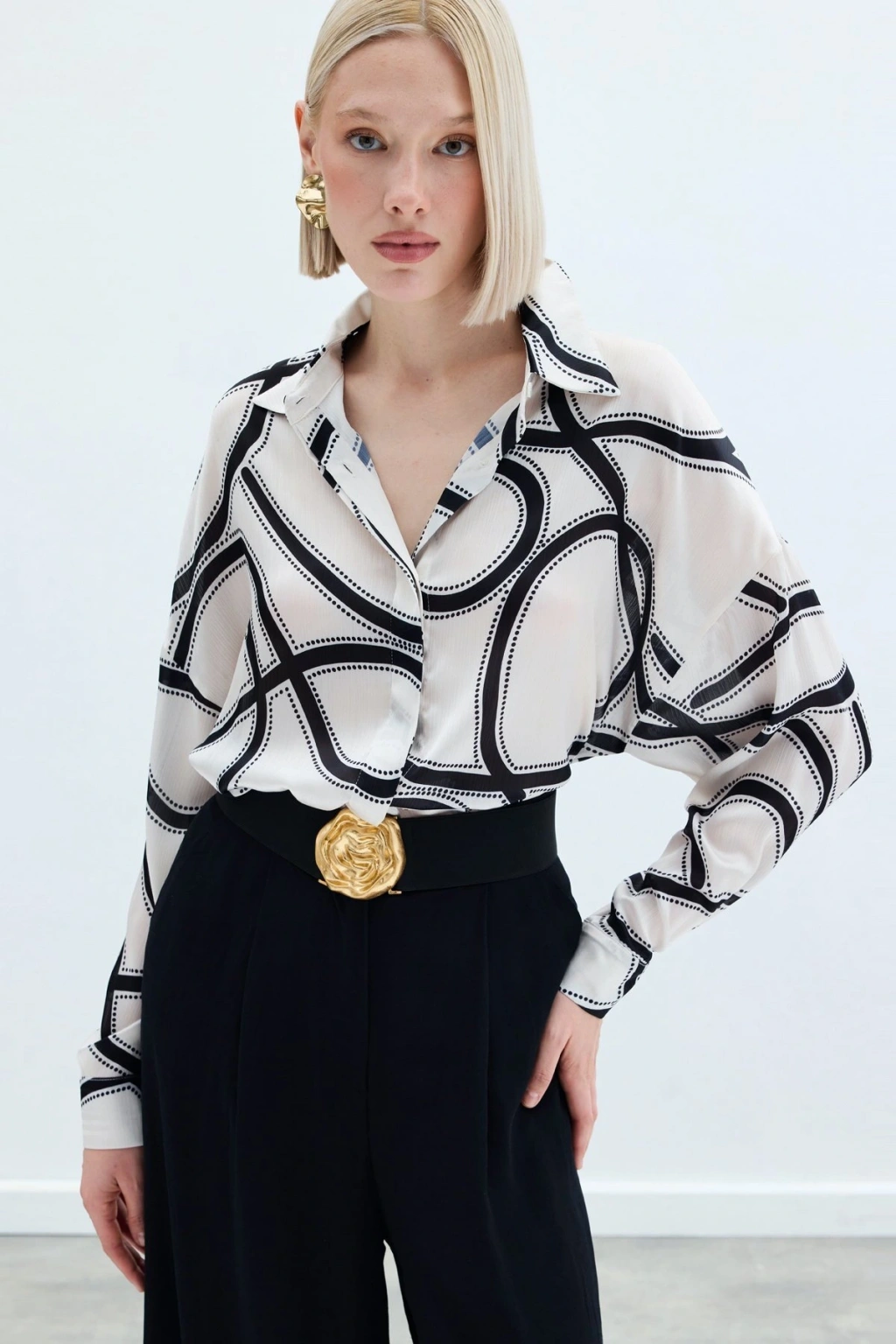 Aksesuarlı Klasik Gömlek - Ekru