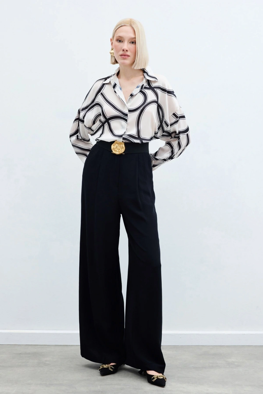 Aksesuarlı Klasik Gömlek - Siyah