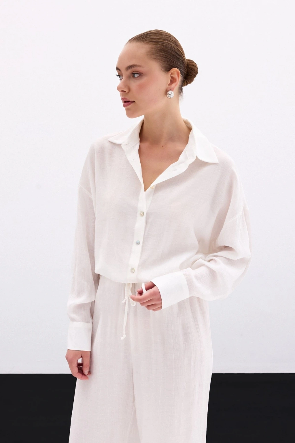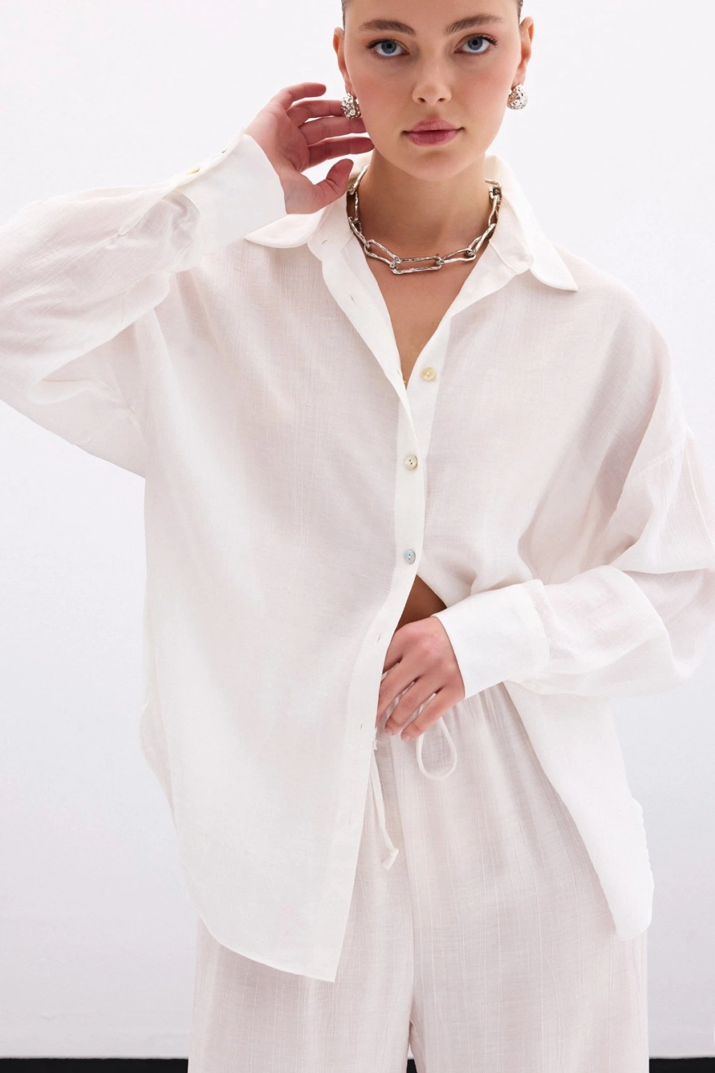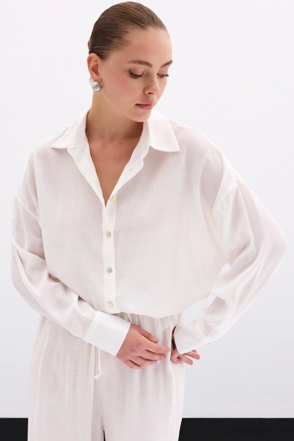 Aksesuarlı Klasik Gömlek - Ekru