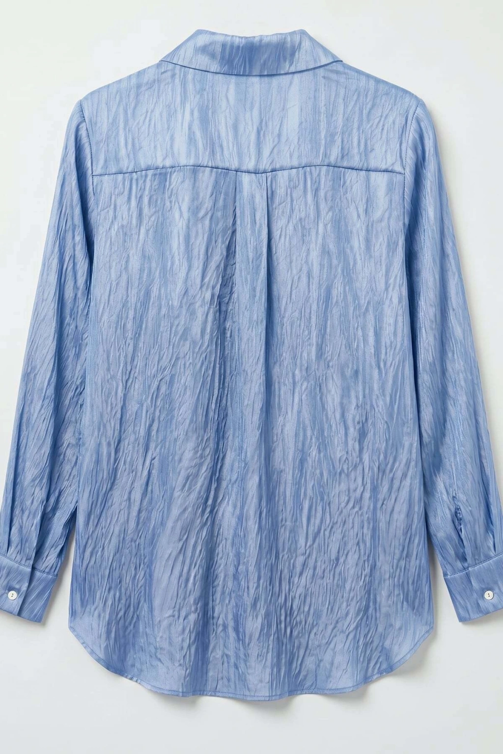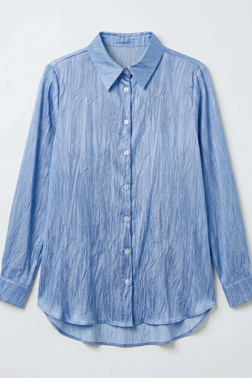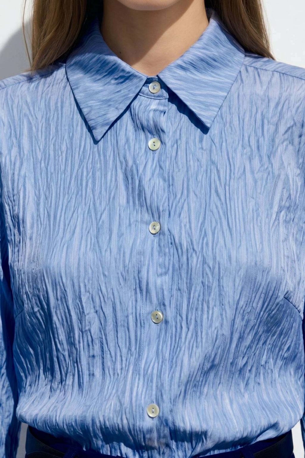 Şal Desen Kolu Katlamalı Gömlek - Mavi