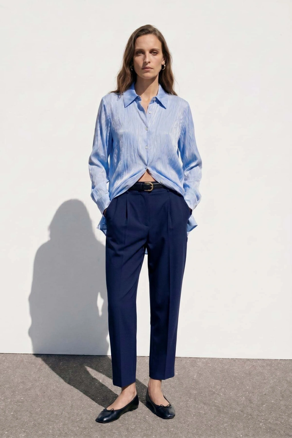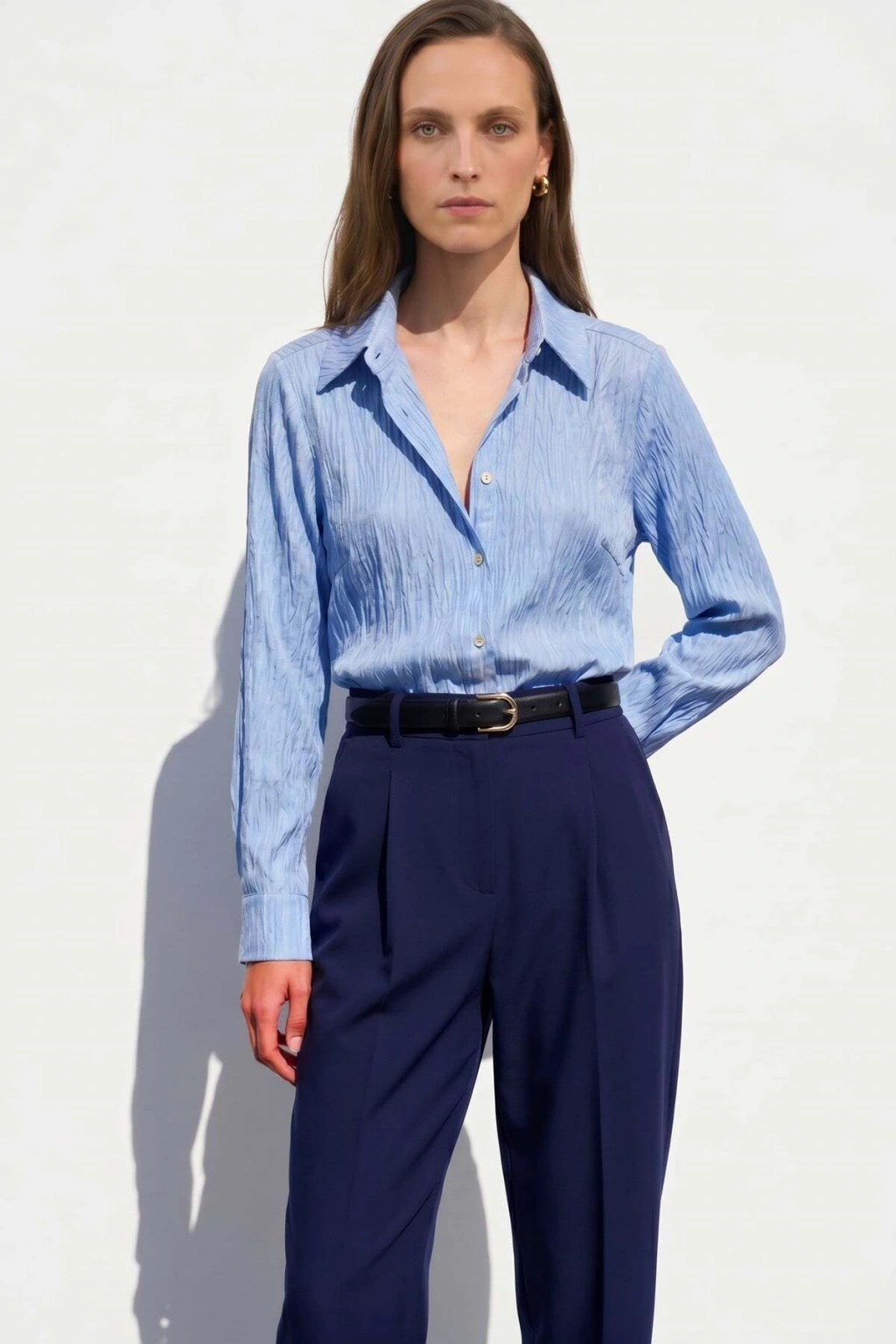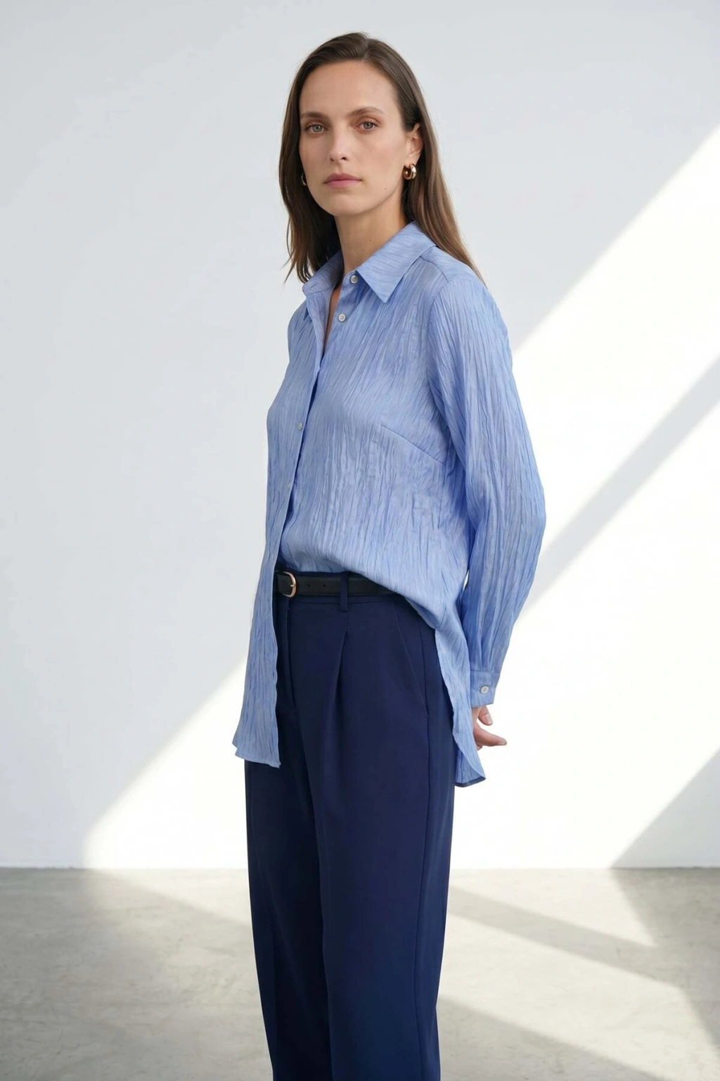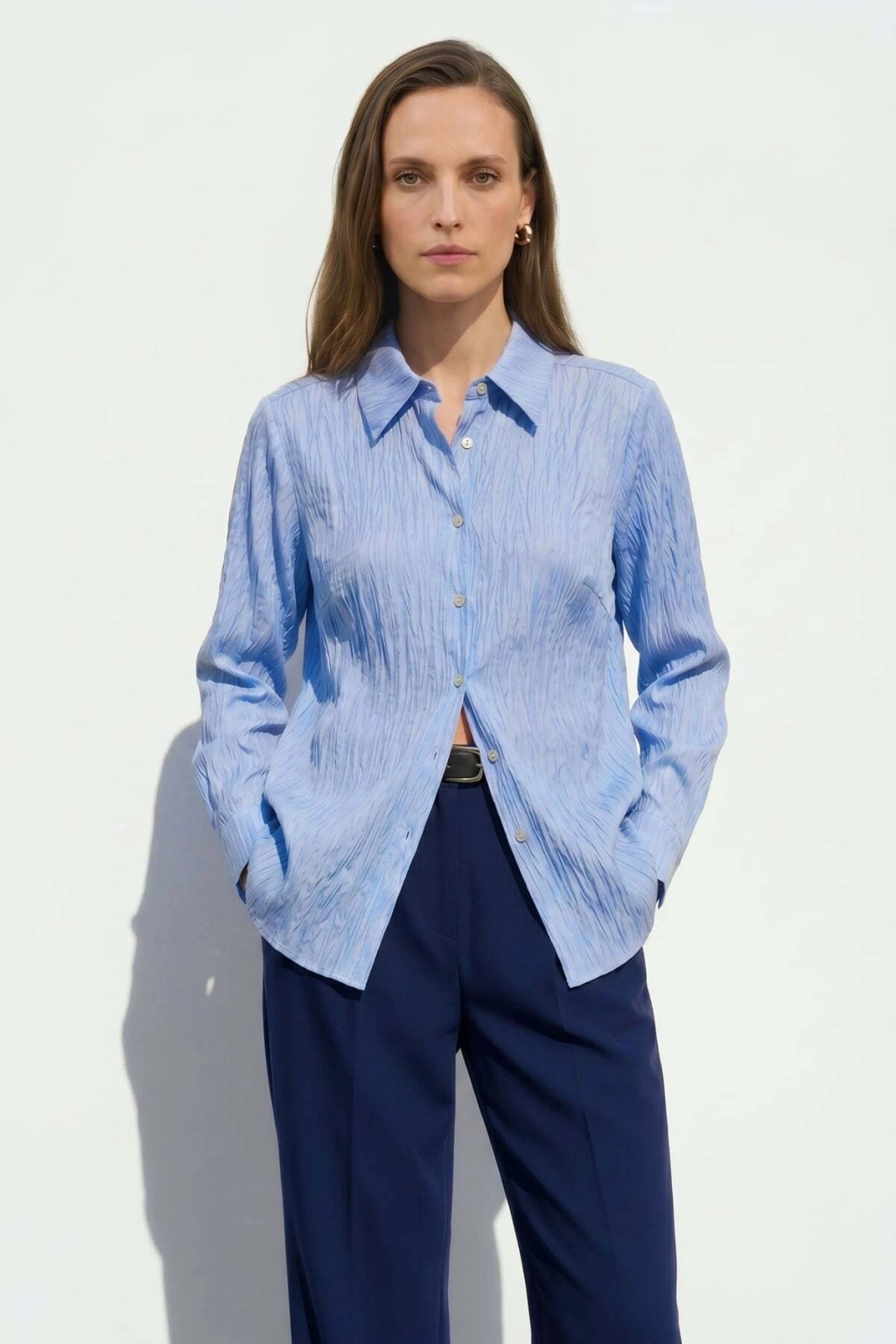 Şal Desen Kolu Katlamalı Gömlek - Mavi