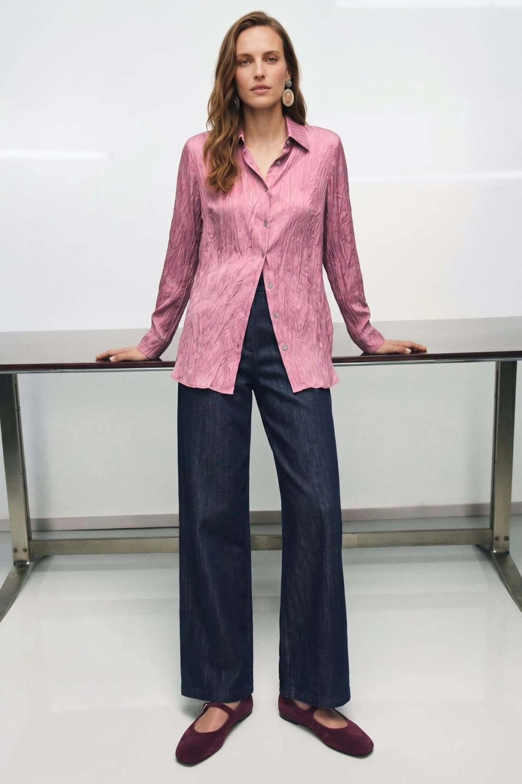 Şal Desen Kolu Katlamalı Gömlek - Pembe