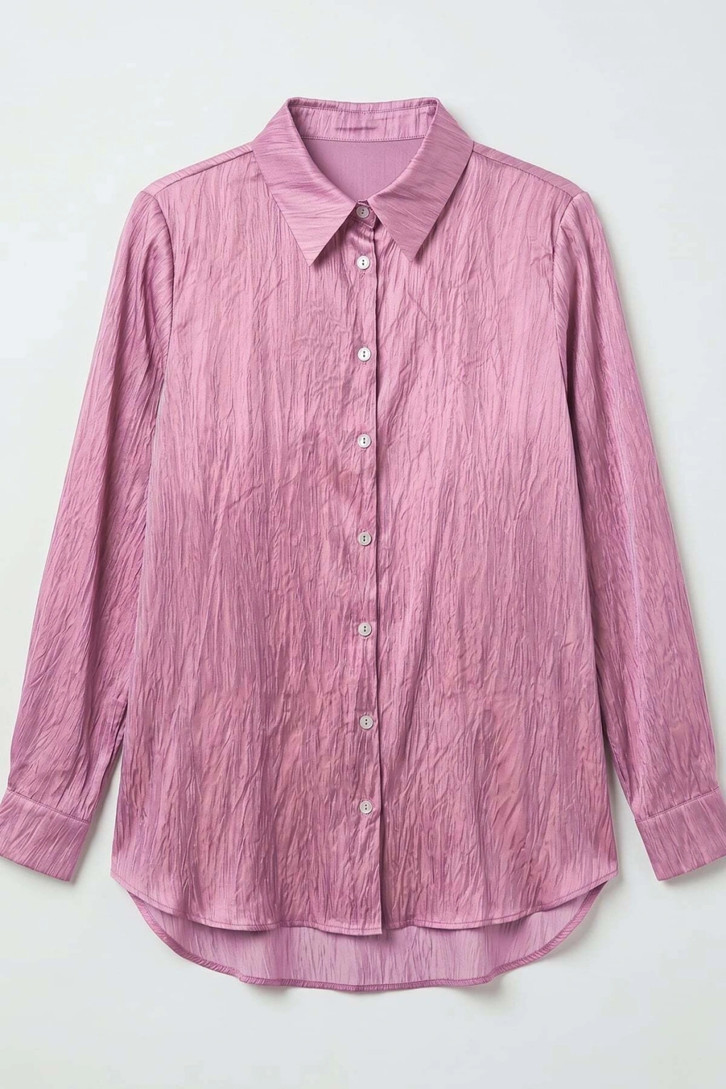 Yakası Bağlamalı Düz Gömlek - Fuşya