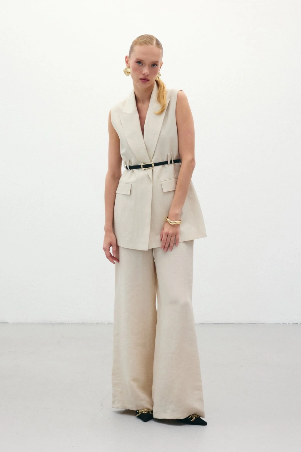 Bel Aksesuarlı Pantolon - Ekru