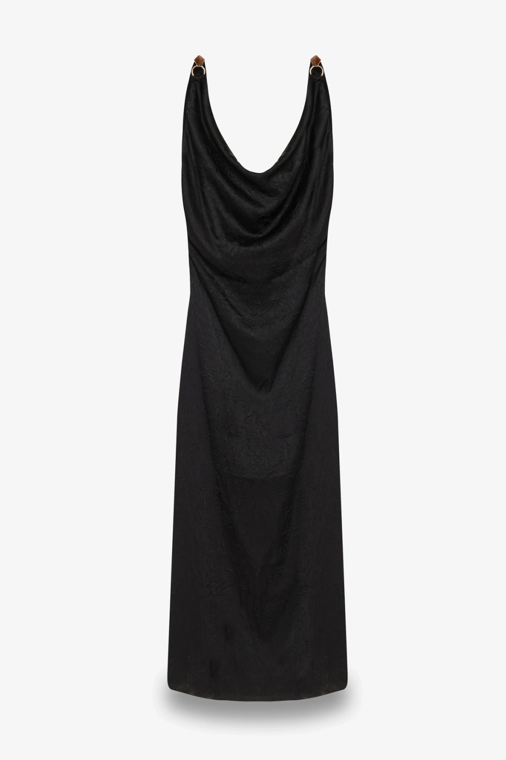 Askılı Uzun Saten Elbise - Siyah