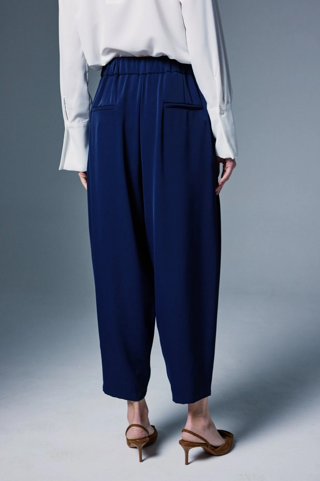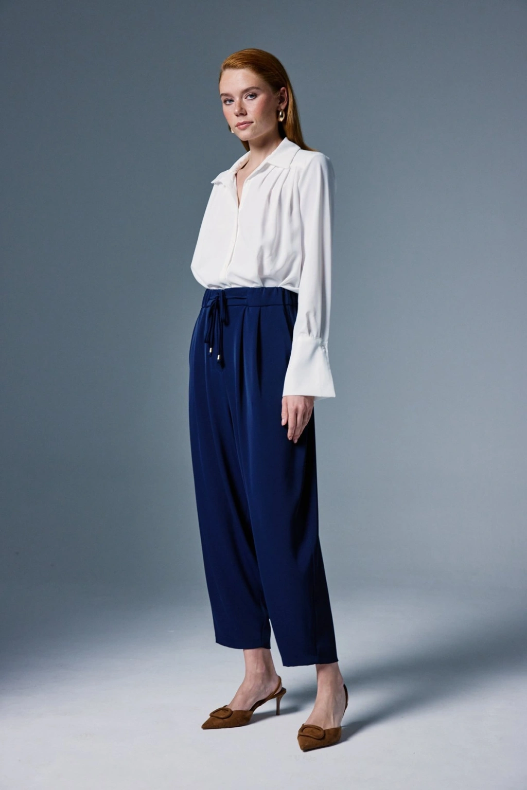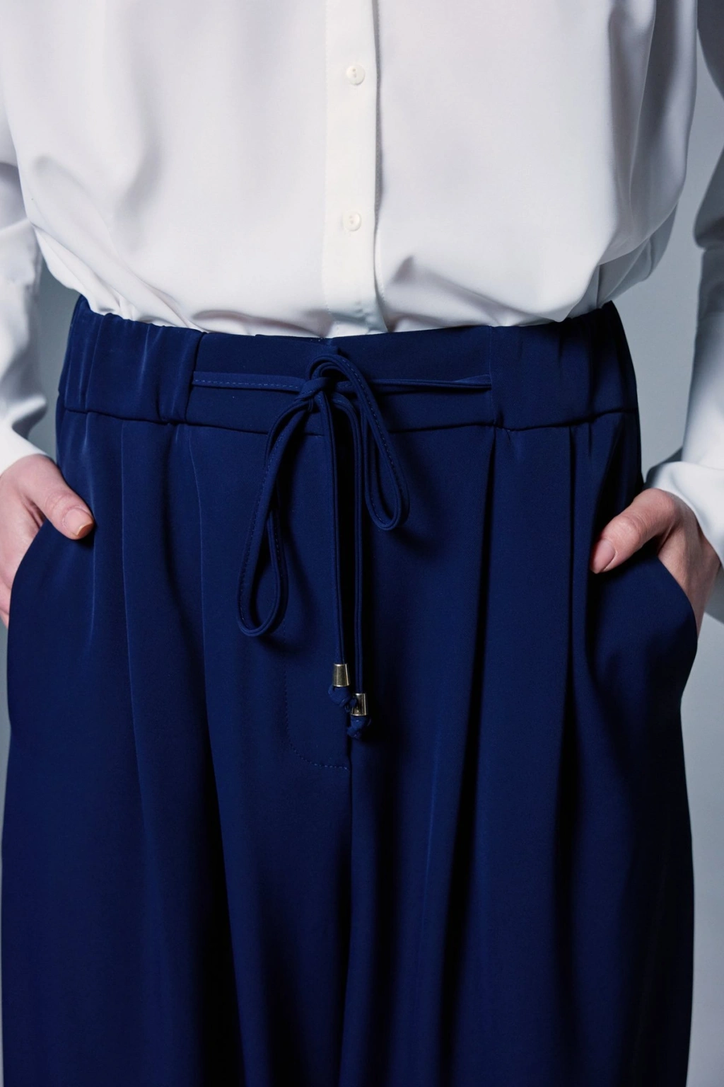 Kemer Detaylı Saten Pantolon - Lacivert