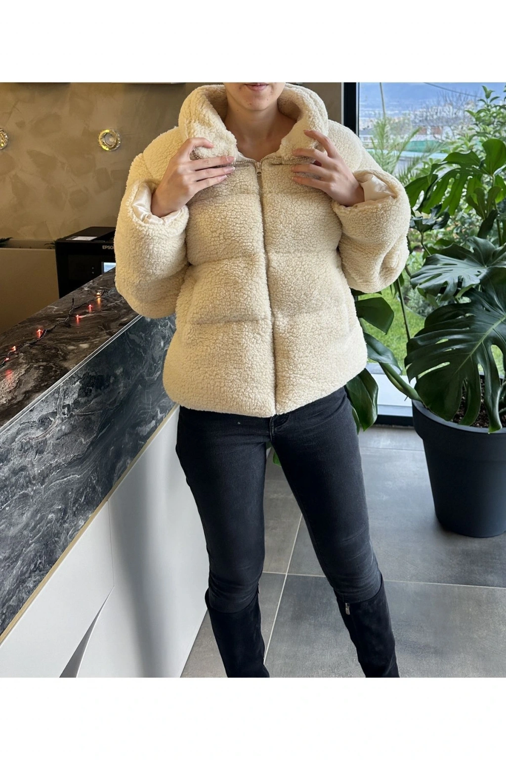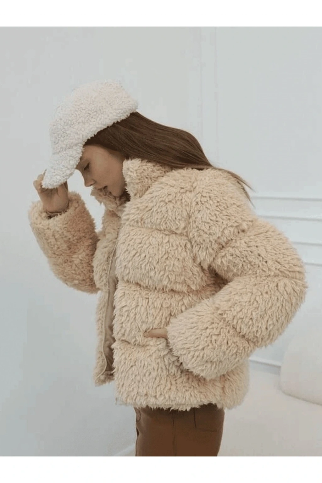 Ekru Şal Yaka Kürk