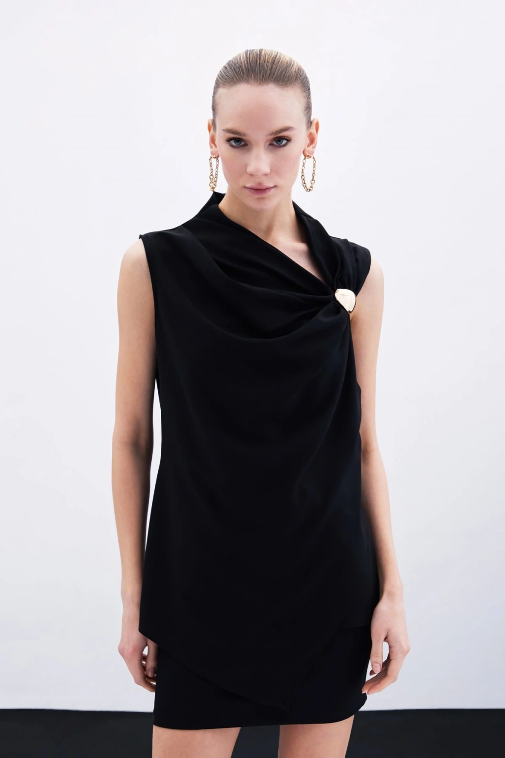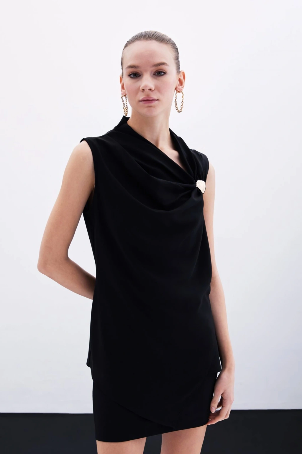 Tek Omuz Aksesuarlı Bluz - Siyah