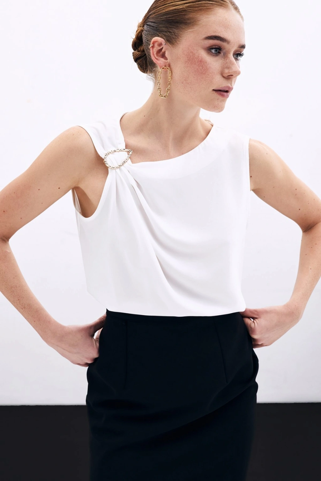 Aksesuar Detaylı Kolsuz Bluz - Ekru