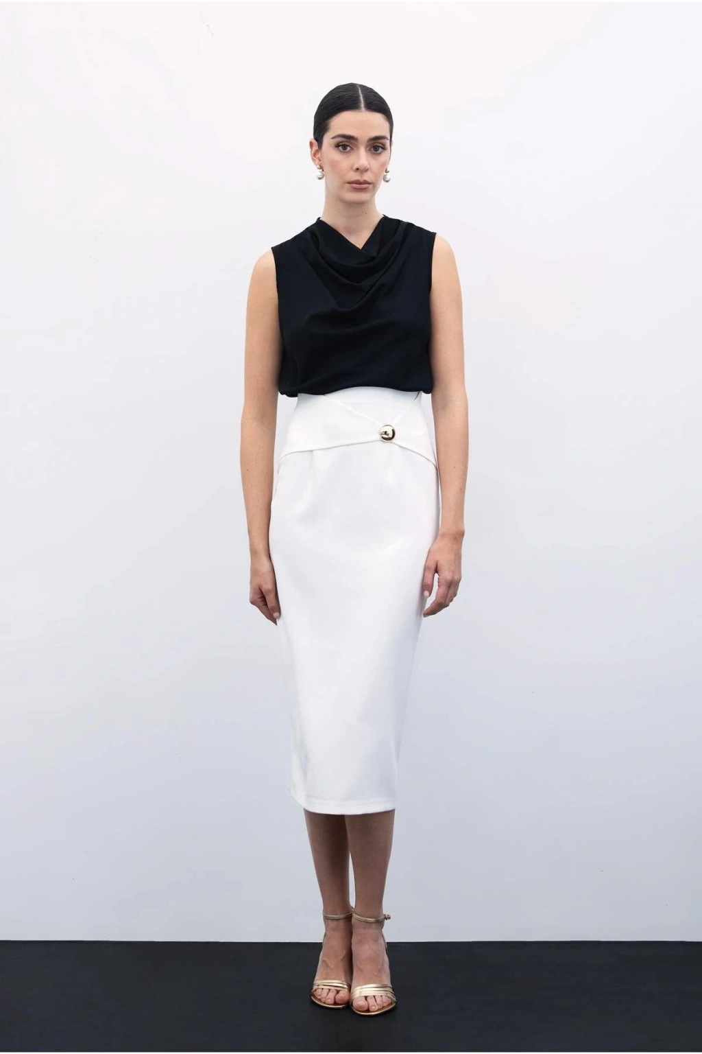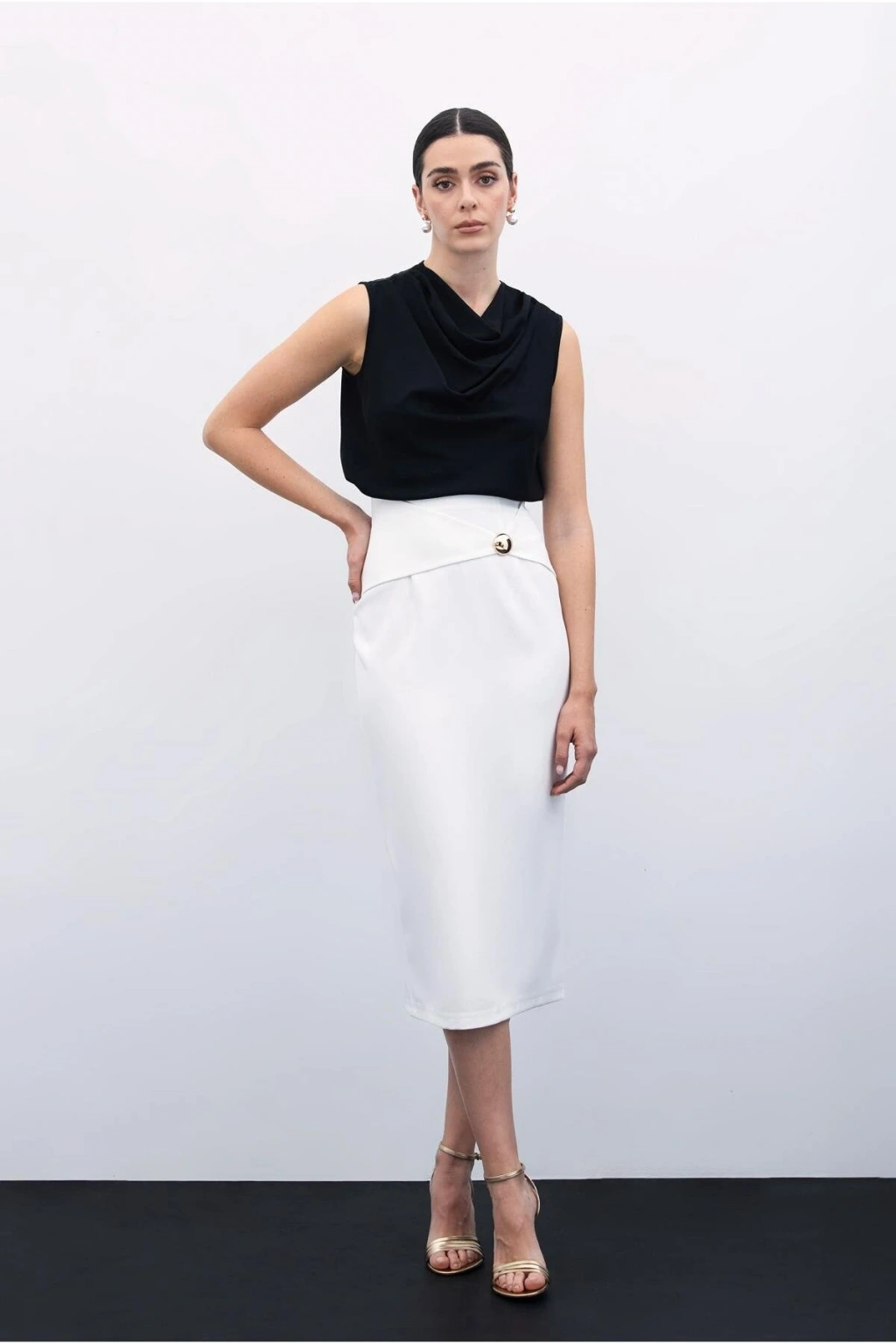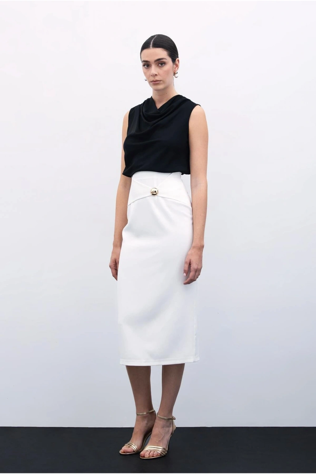 Toka Detaylı Kalem Etek - Ekru