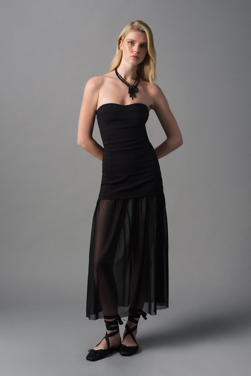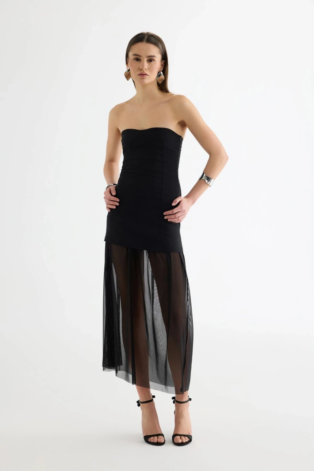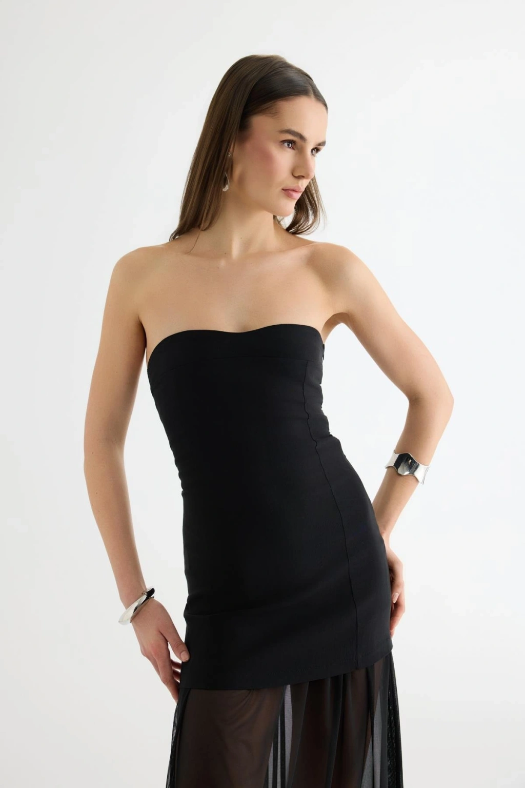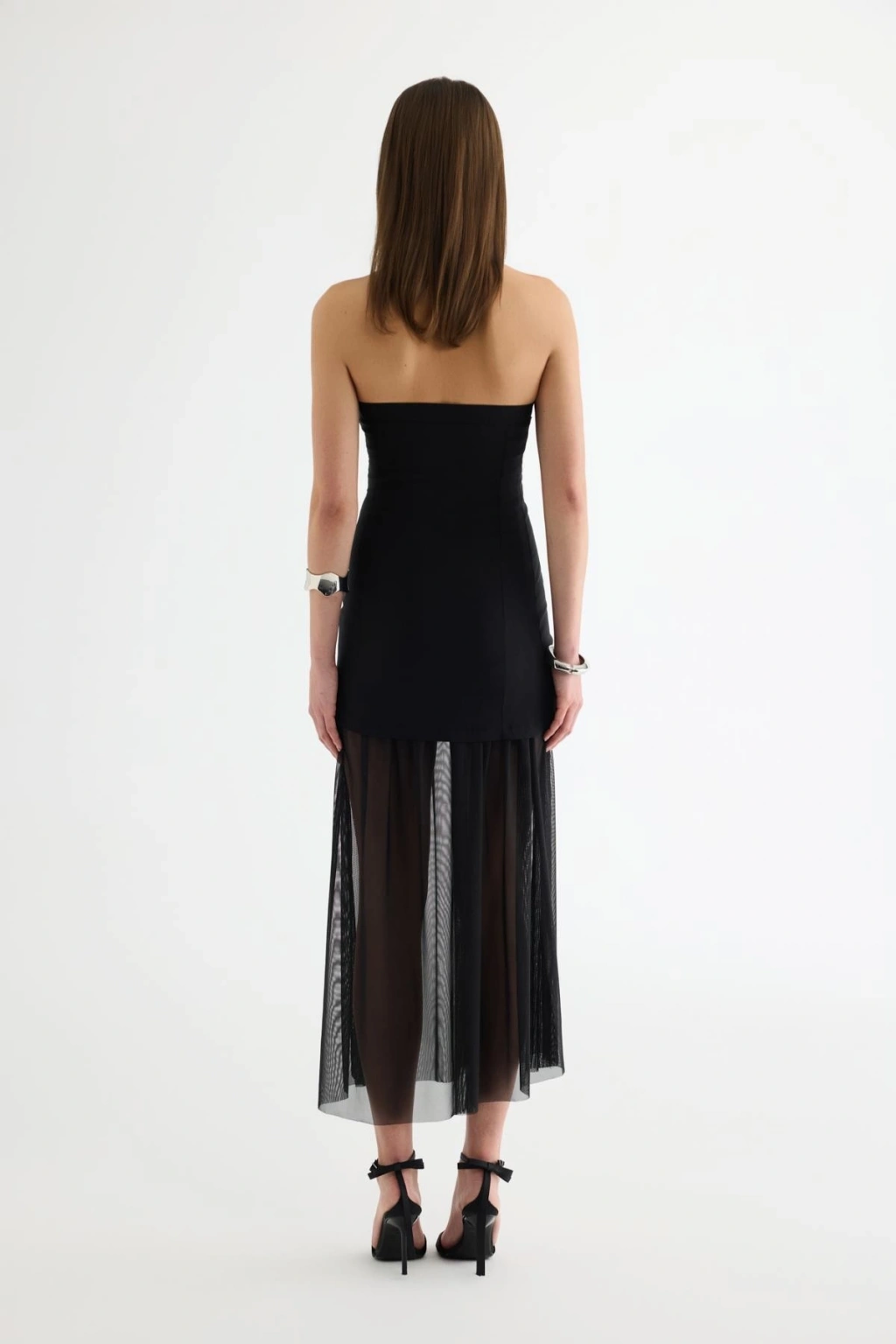 Tül Matchli Elbise Siyah