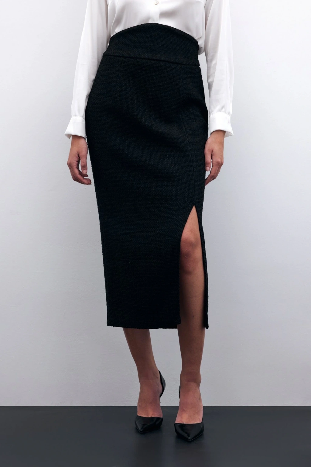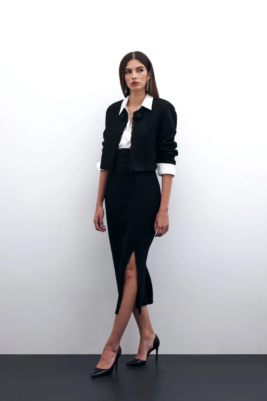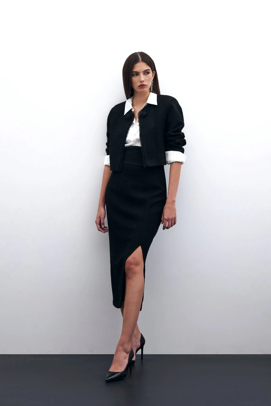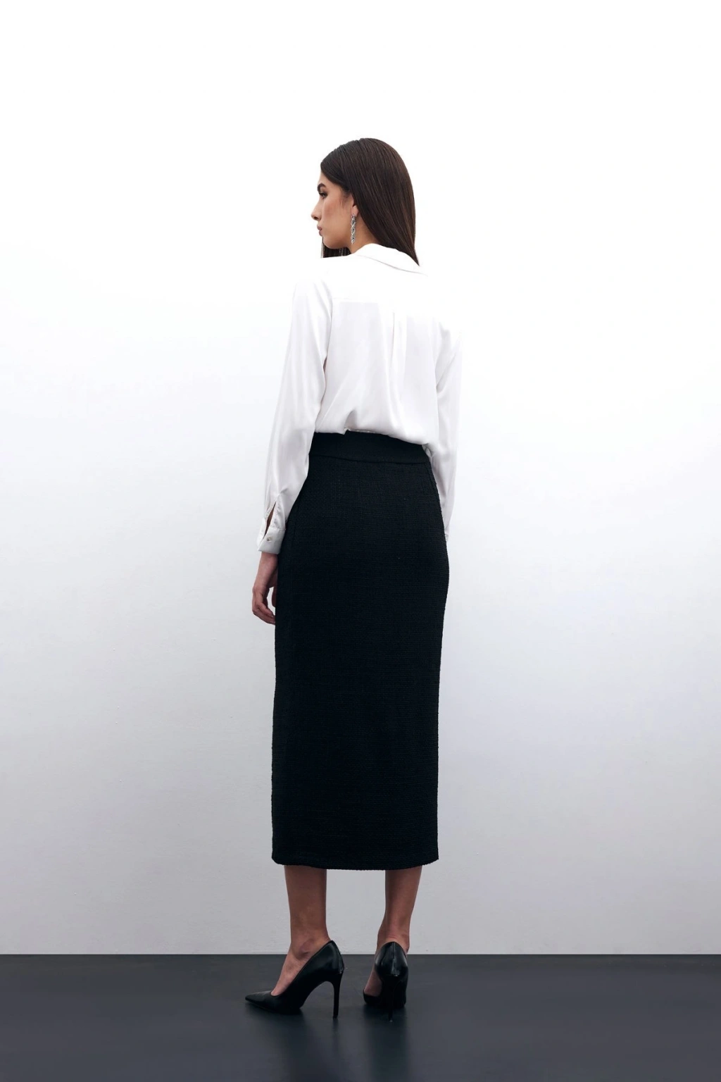 Kruvaze Süs Cepli Kısa Etek - Siyah