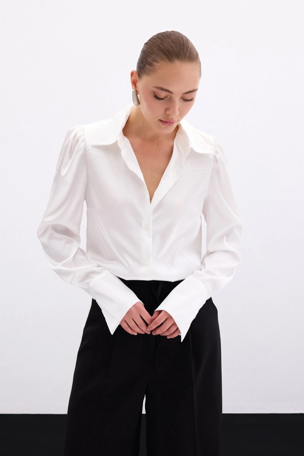 Vatkalı Saten Gömlek - Ekru