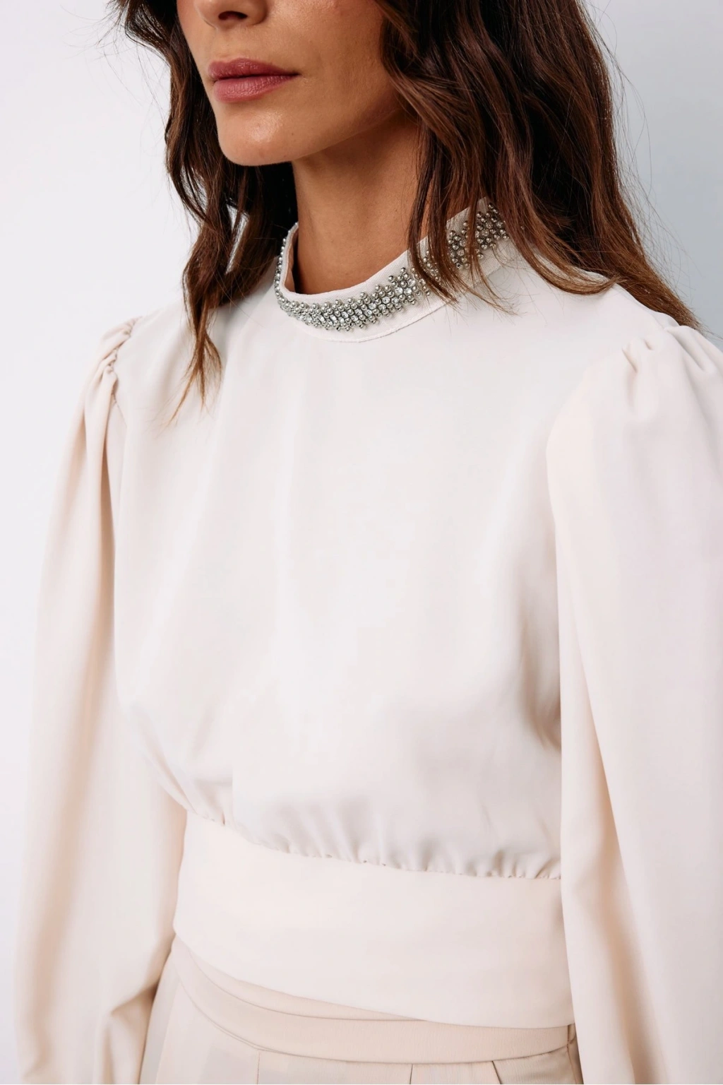 Yaka Aksesuarlı Bluz - Bej