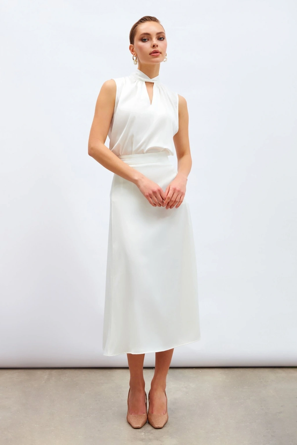 Düğüm Detaylı Bluz Ekru