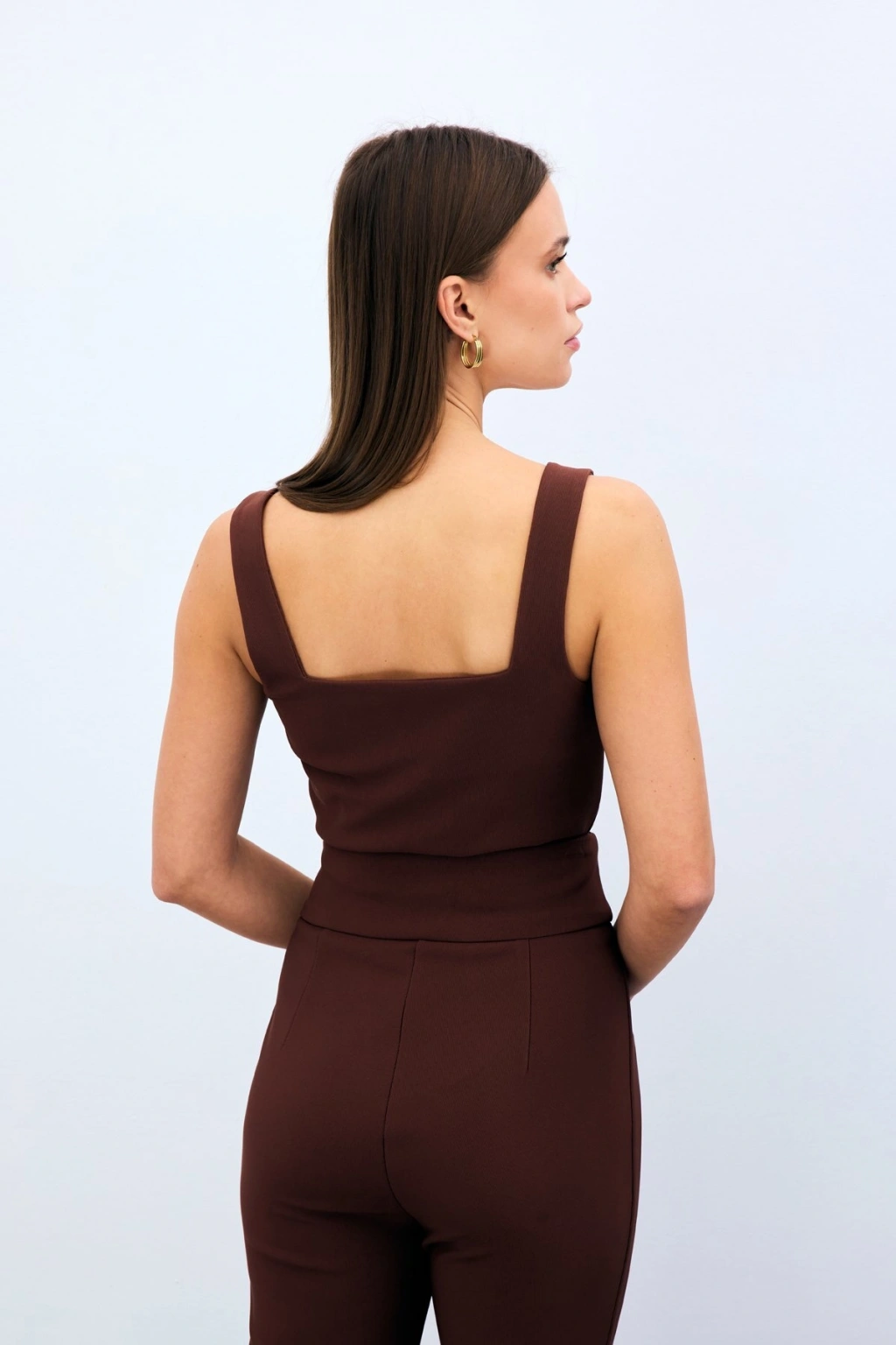 Yaka Gold Aksesuarlı Bluz - Kahve