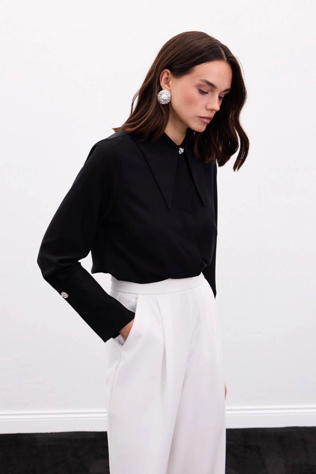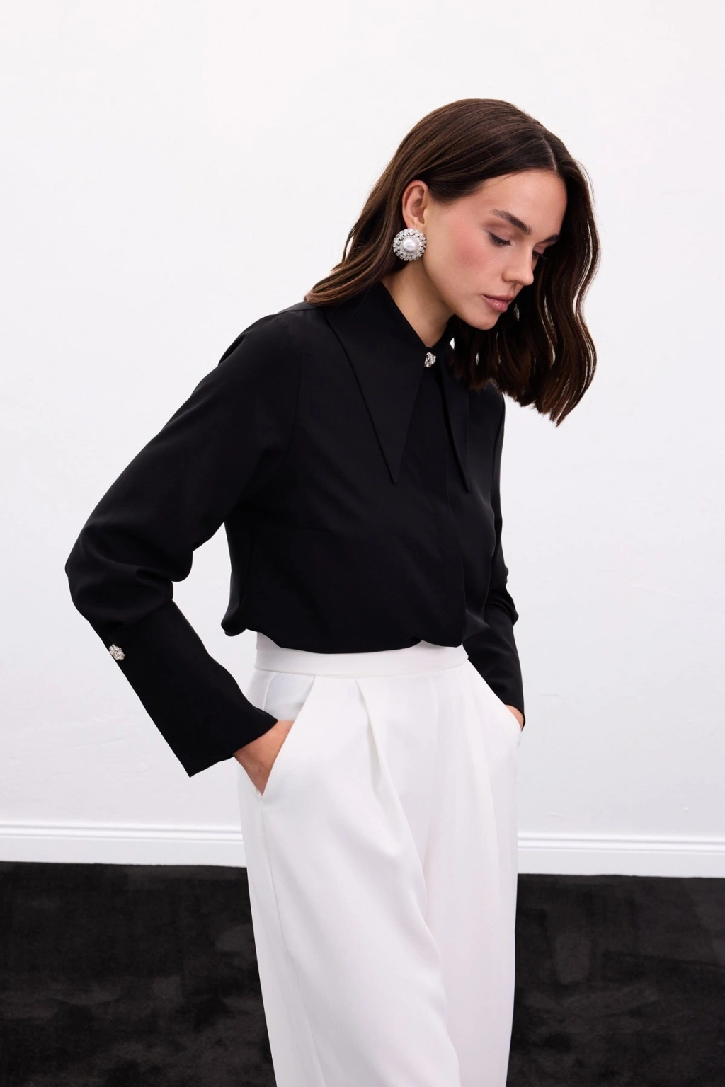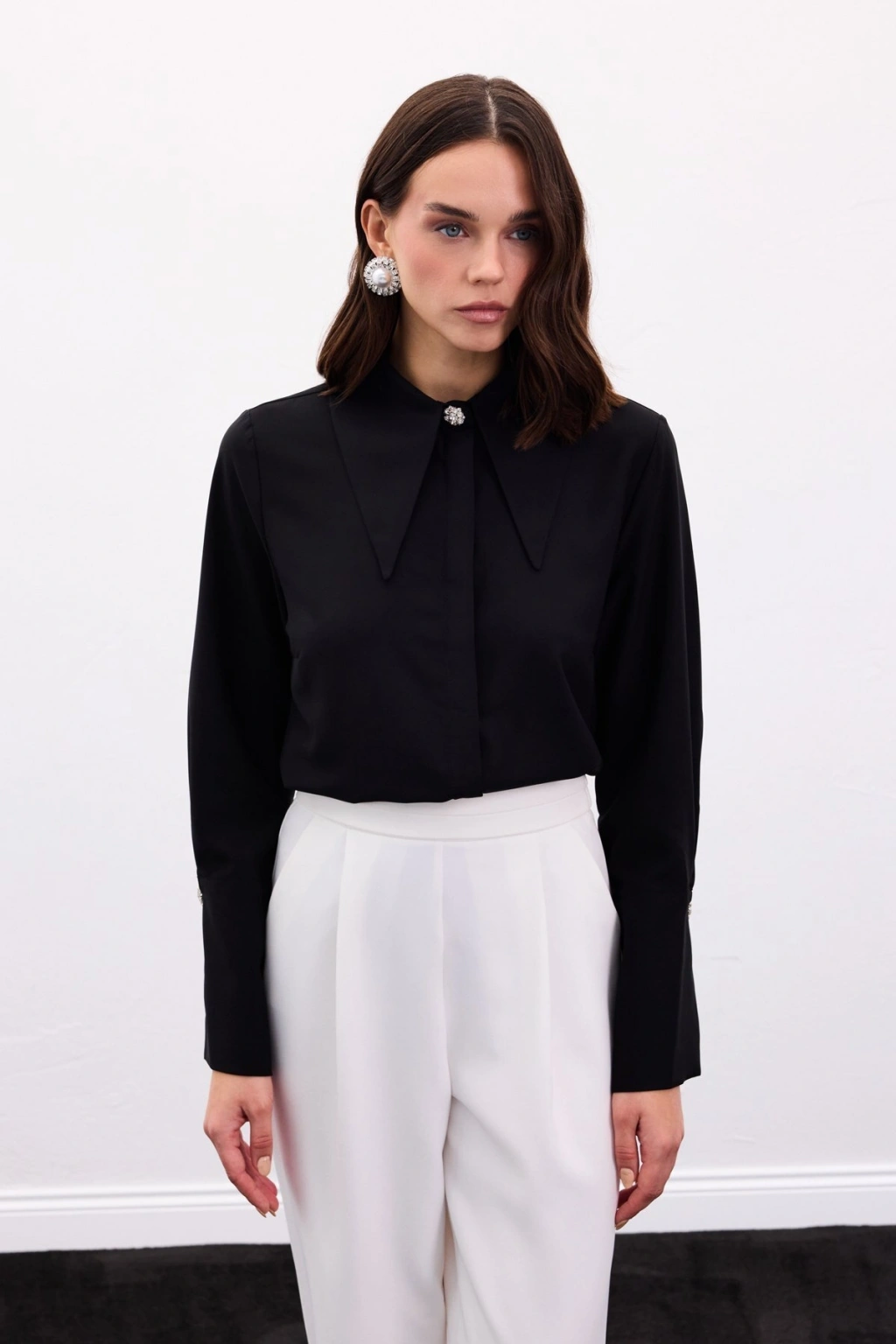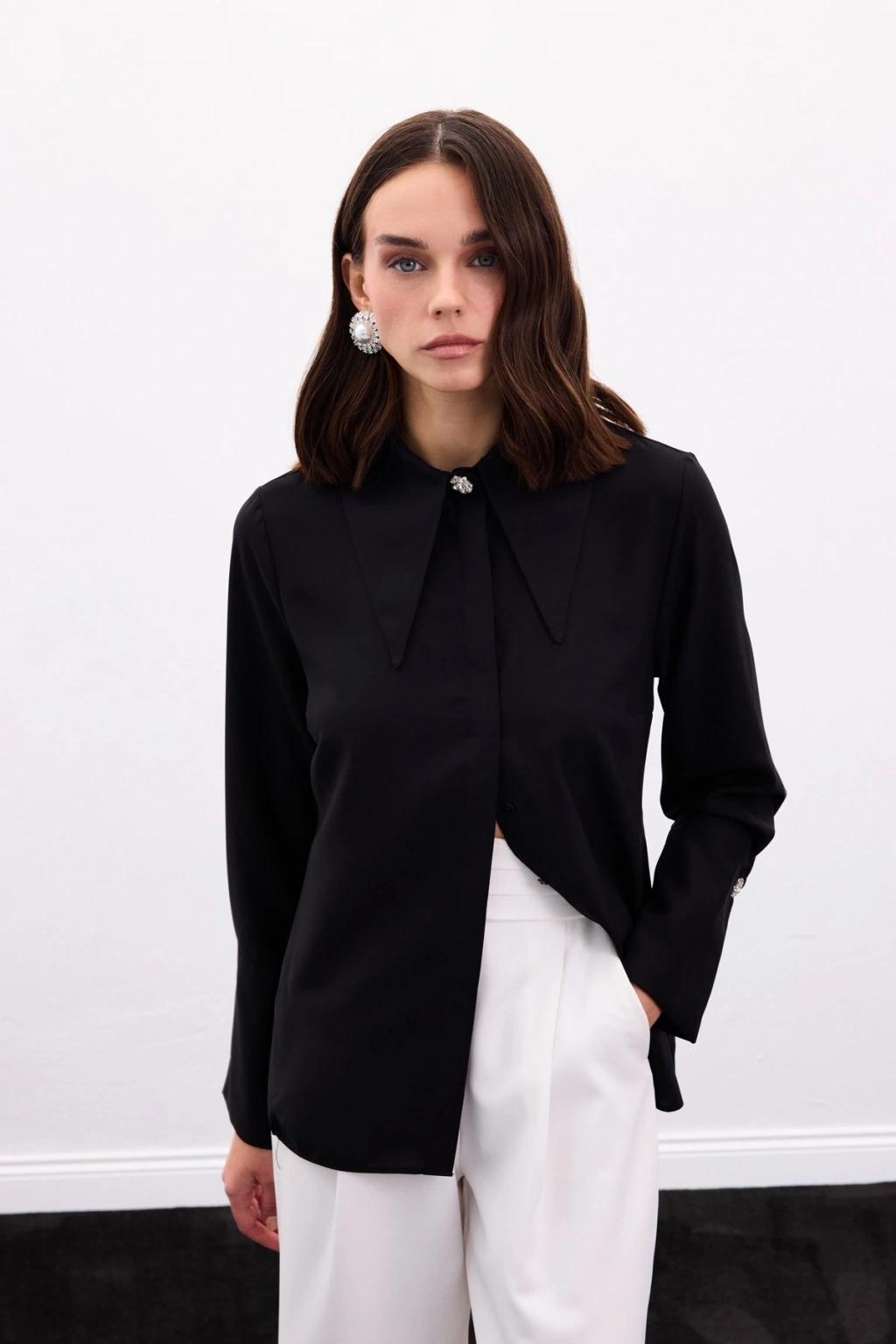 Yaka Ve Manşet Aksesuarlı Gömlek - Siyah
