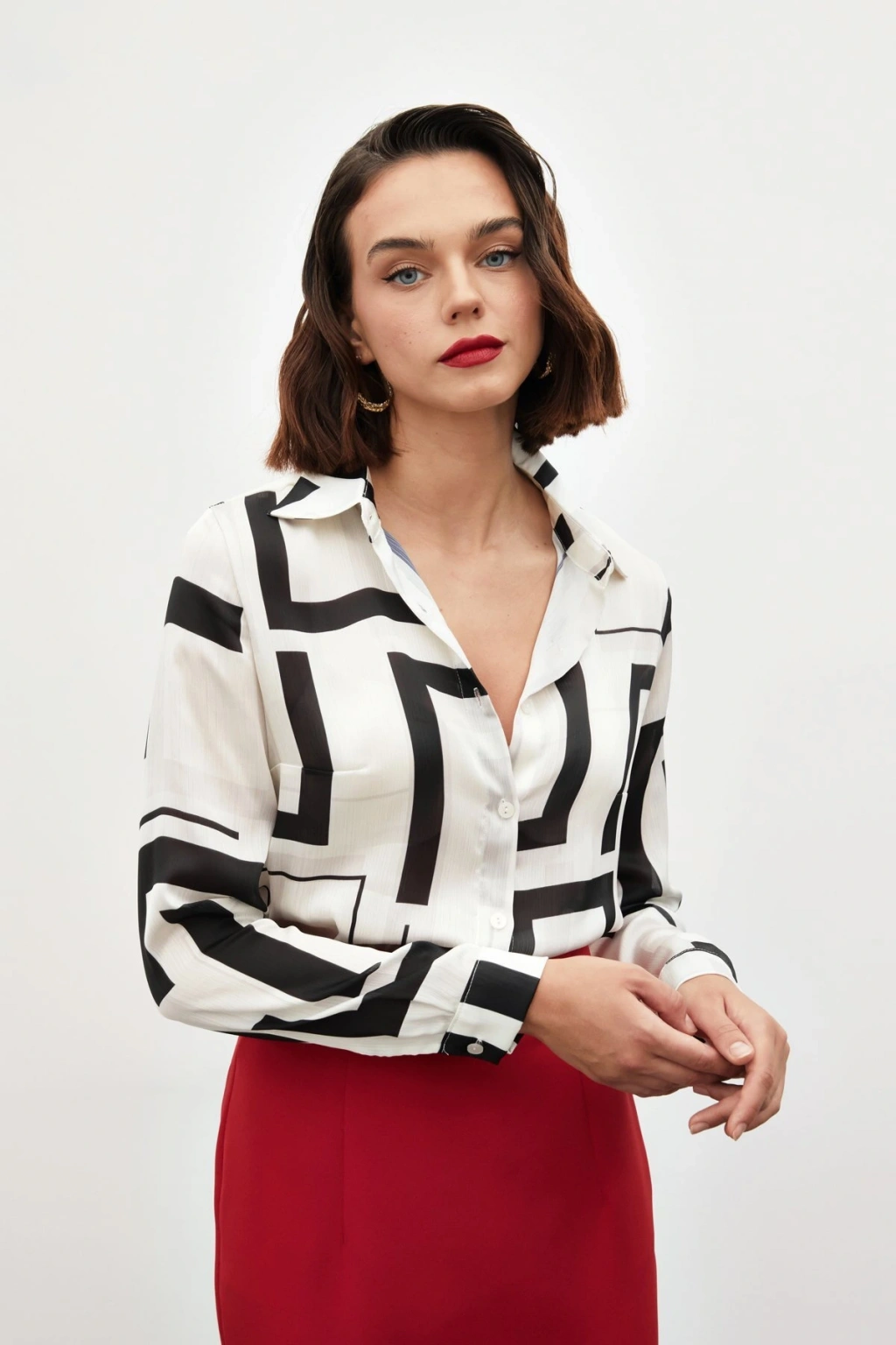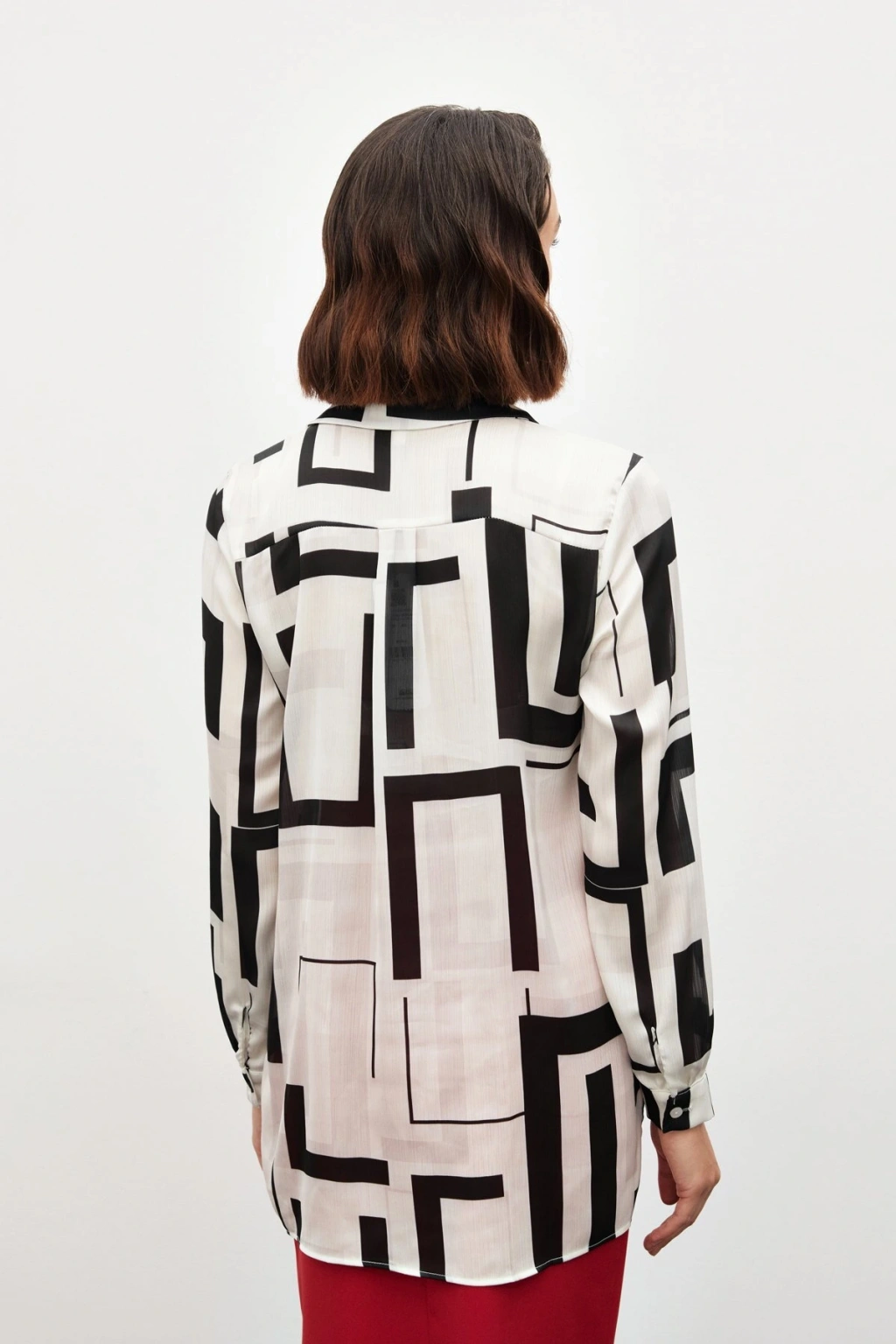 Desenli Fular Yaka Gömlek - Bordo